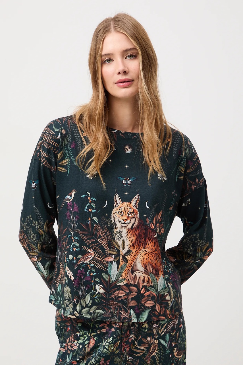 - Wzór z motywem roślinnym i zwierzęcym.