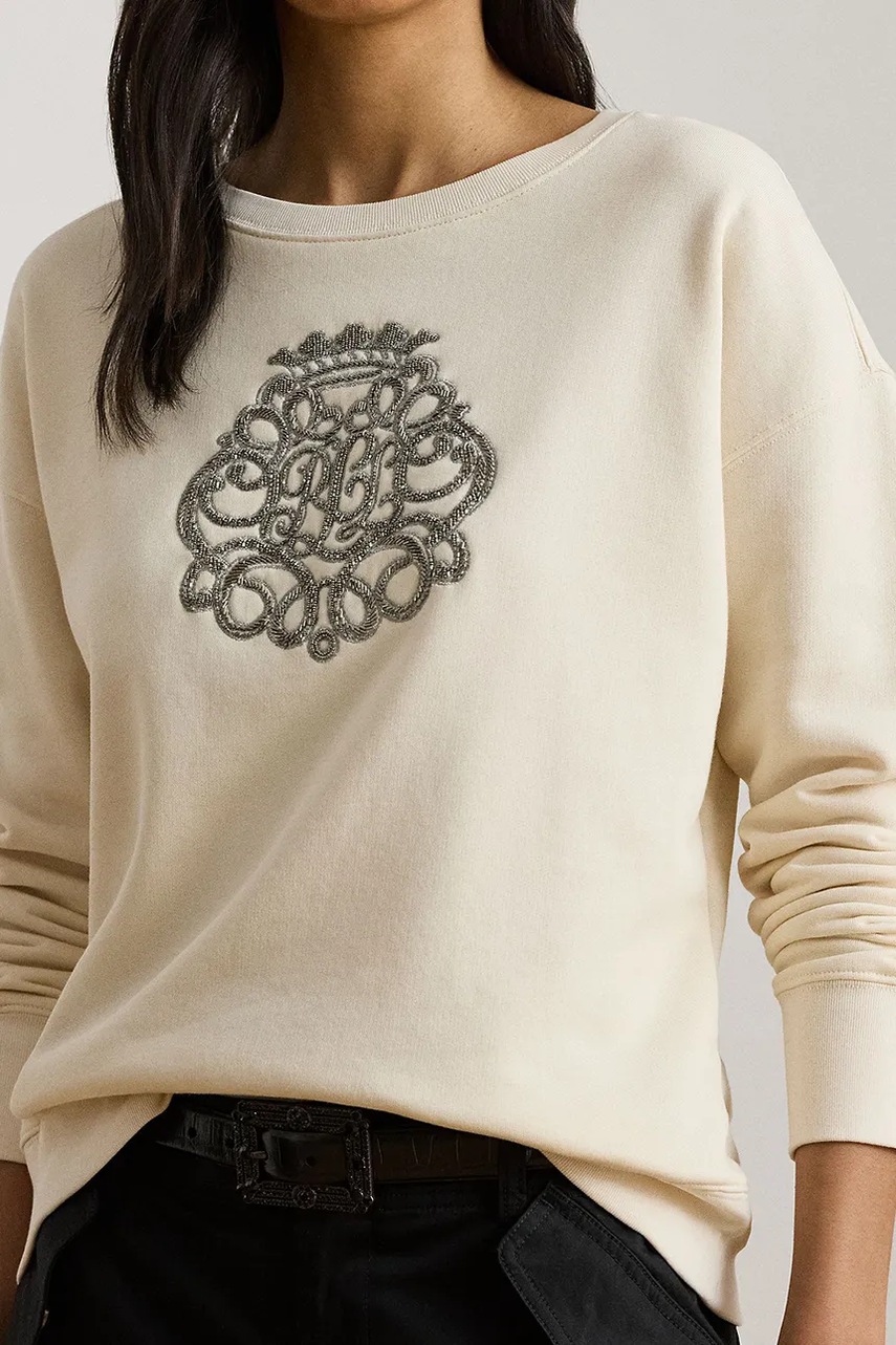 Lauren Ralph Lauren bluza damska kolor beżowy z aplikacją 200980210