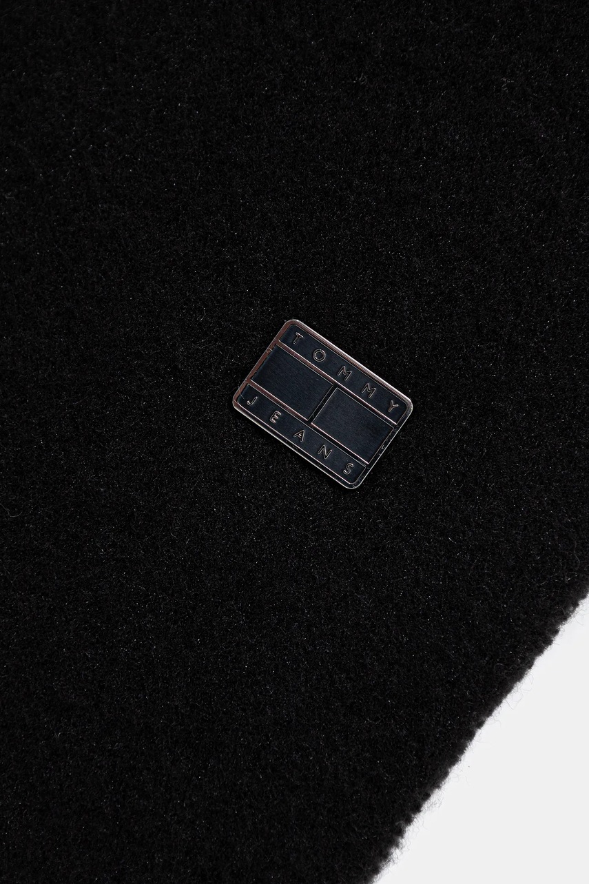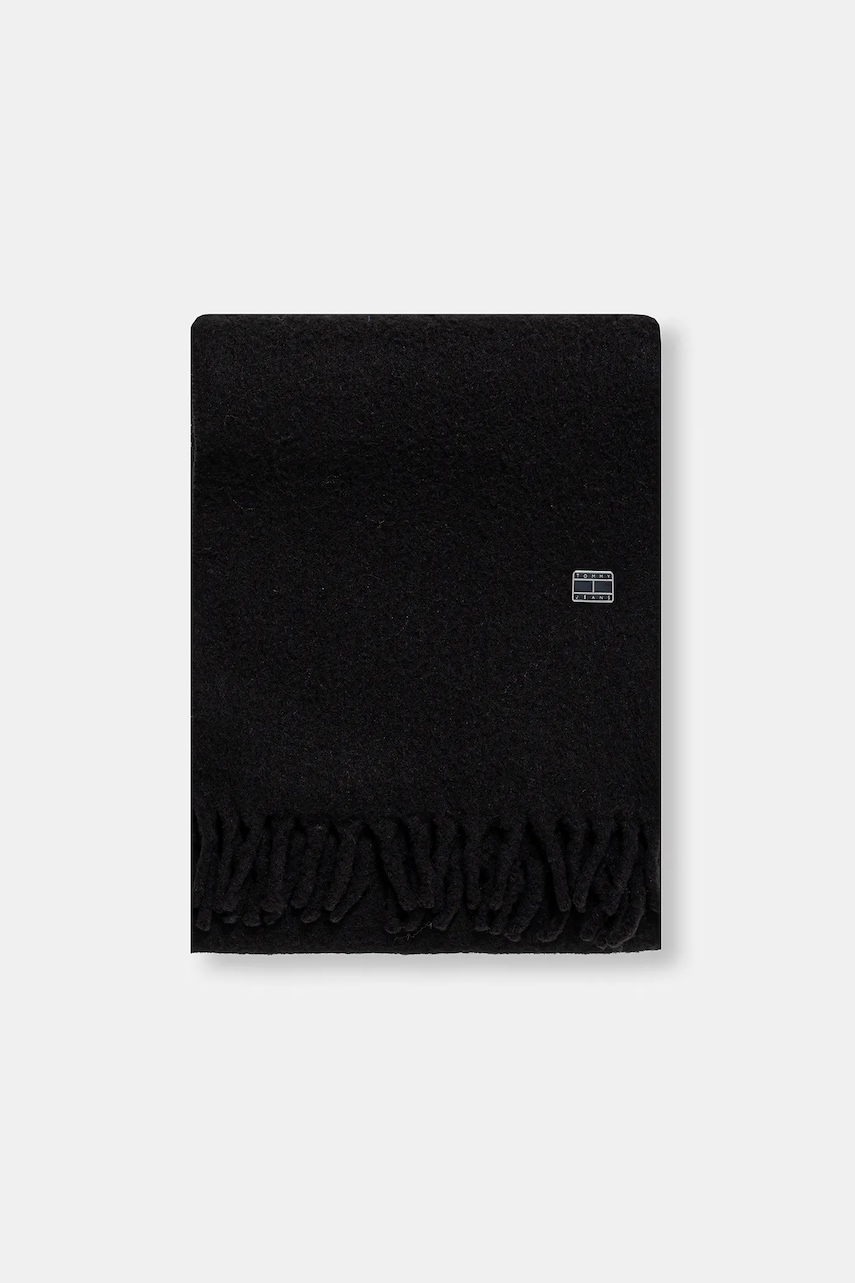 Tommy Jeans szalik z dodatkiem wełny damski kolor czarny gładki AW0AW17903
