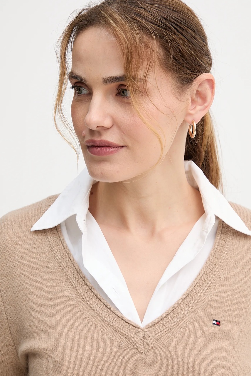 Tommy Hilfiger sweter wełniany damski kolor beżowy lekki WW0WW43505