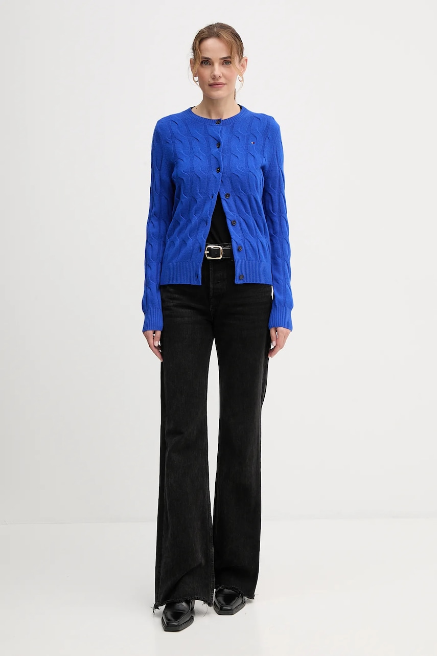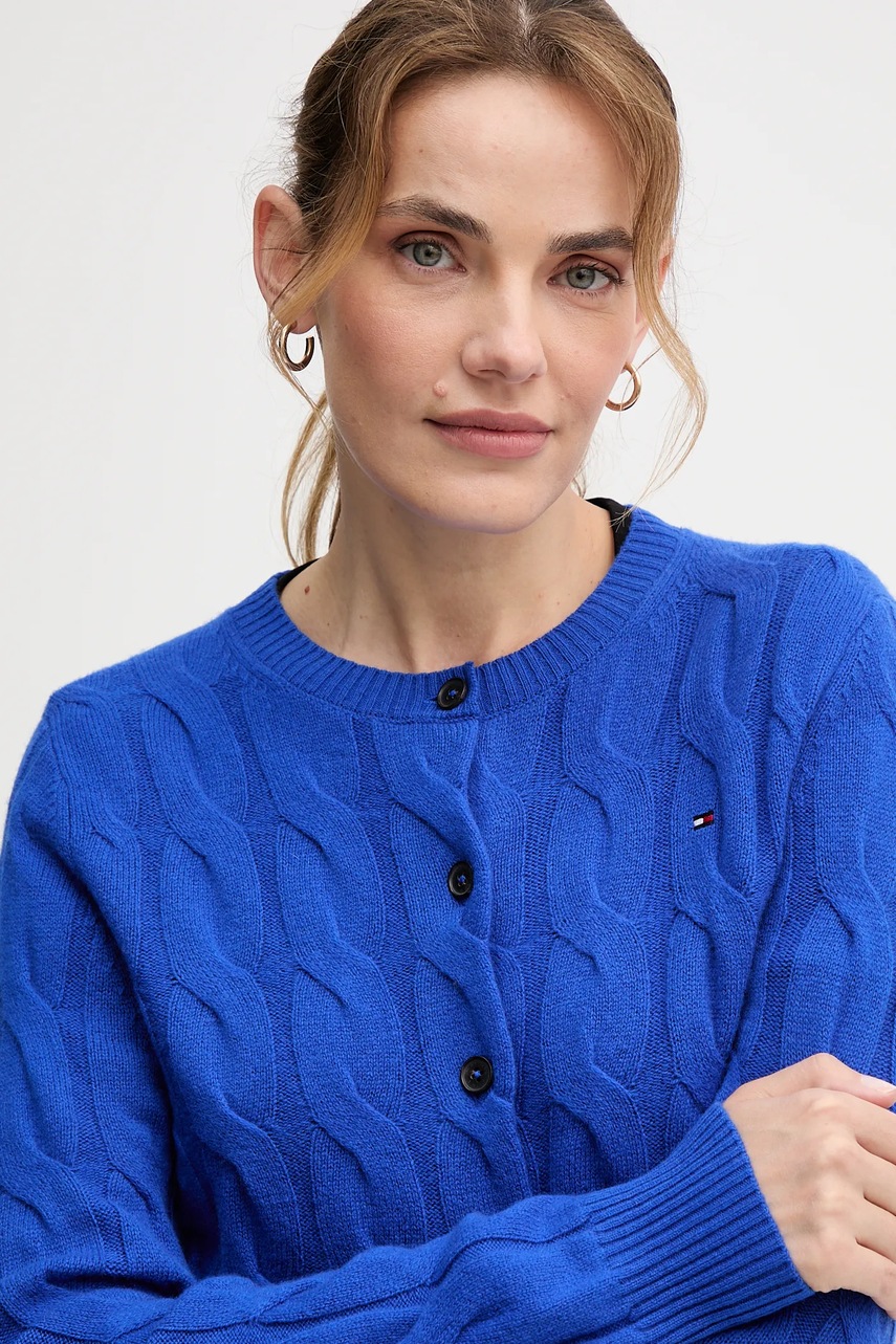 Tommy Hilfiger kardigan wełniany damski kolor niebieski WW0WW47463
