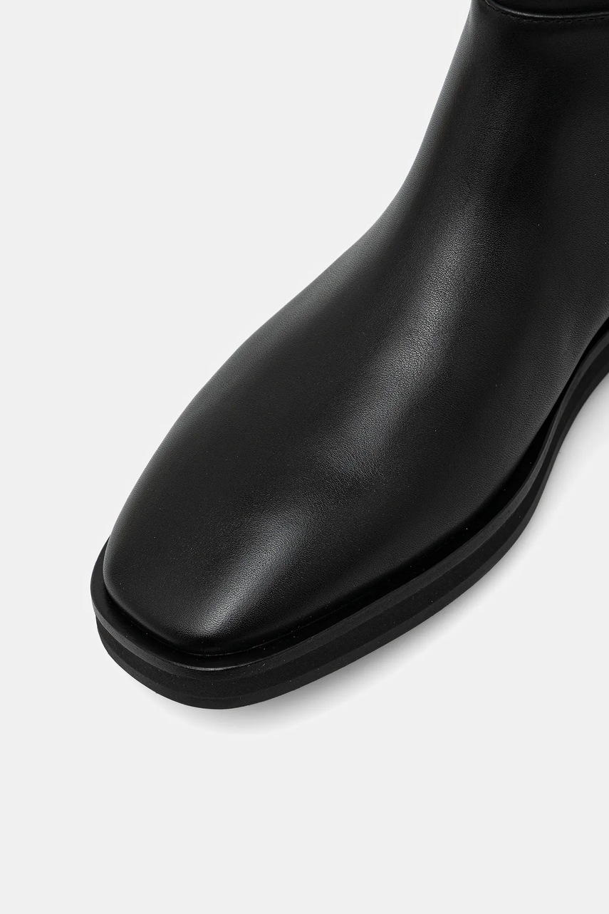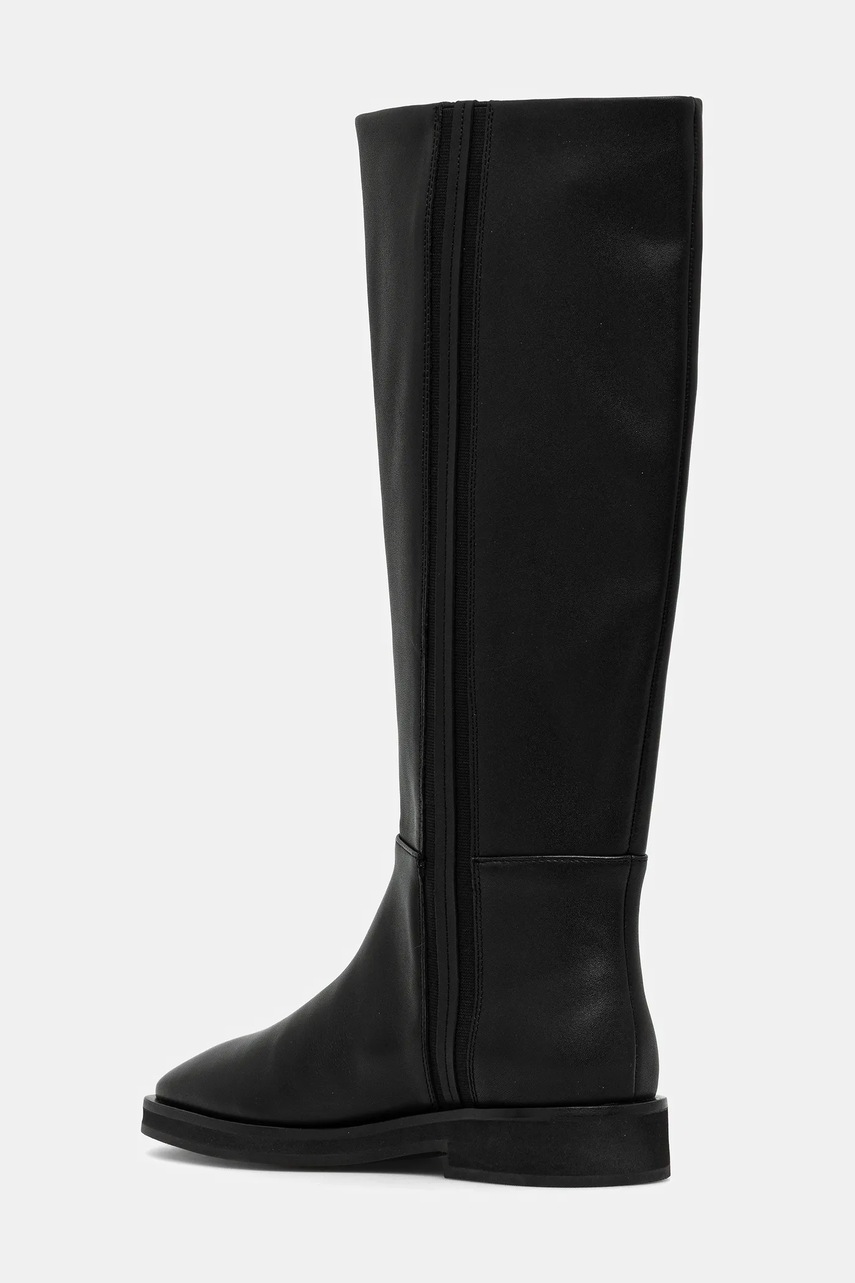 Calvin Klein kozaki skórzane FORMAL UTK BOOT LTH damskie kolor czarny na płaskim obcasie HW0HW02599