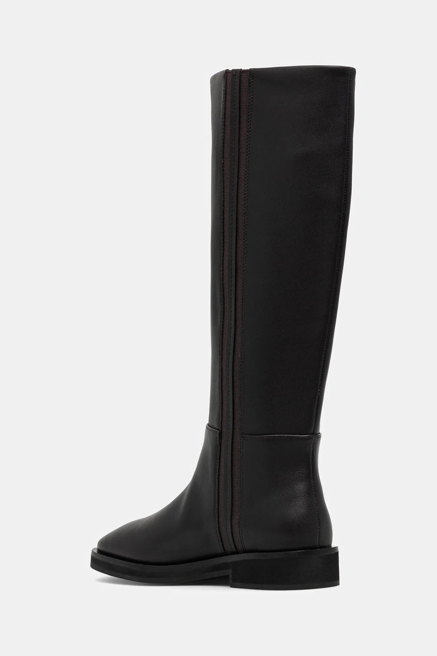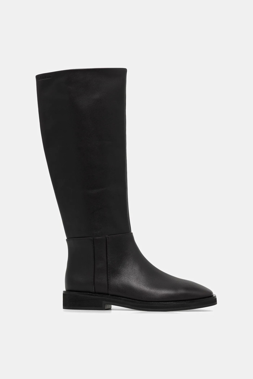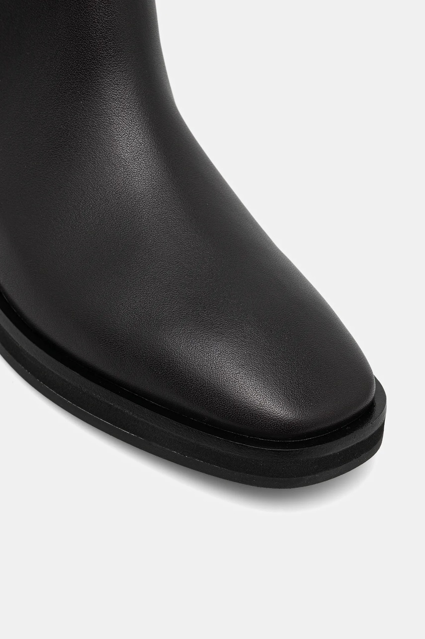 Calvin Klein kozaki skórzane FORMAL UTK BOOT LTH damskie kolor brązowy na płaskim obcasie HW0HW02599