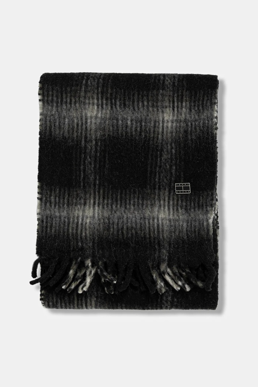 Tommy Jeans szalik z dodatkiem wełny damski kolor czarny wzorzysty AW0AW17904