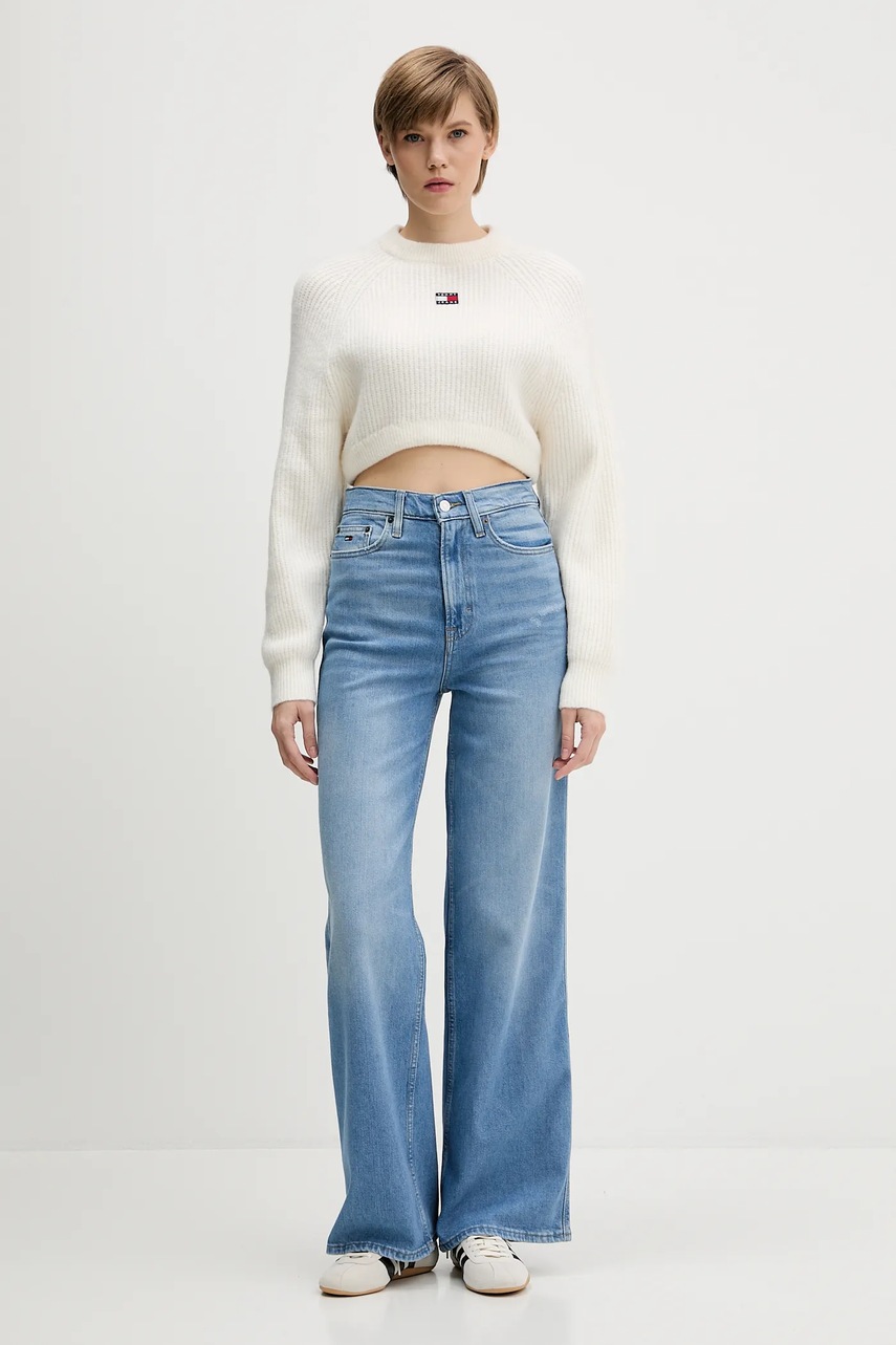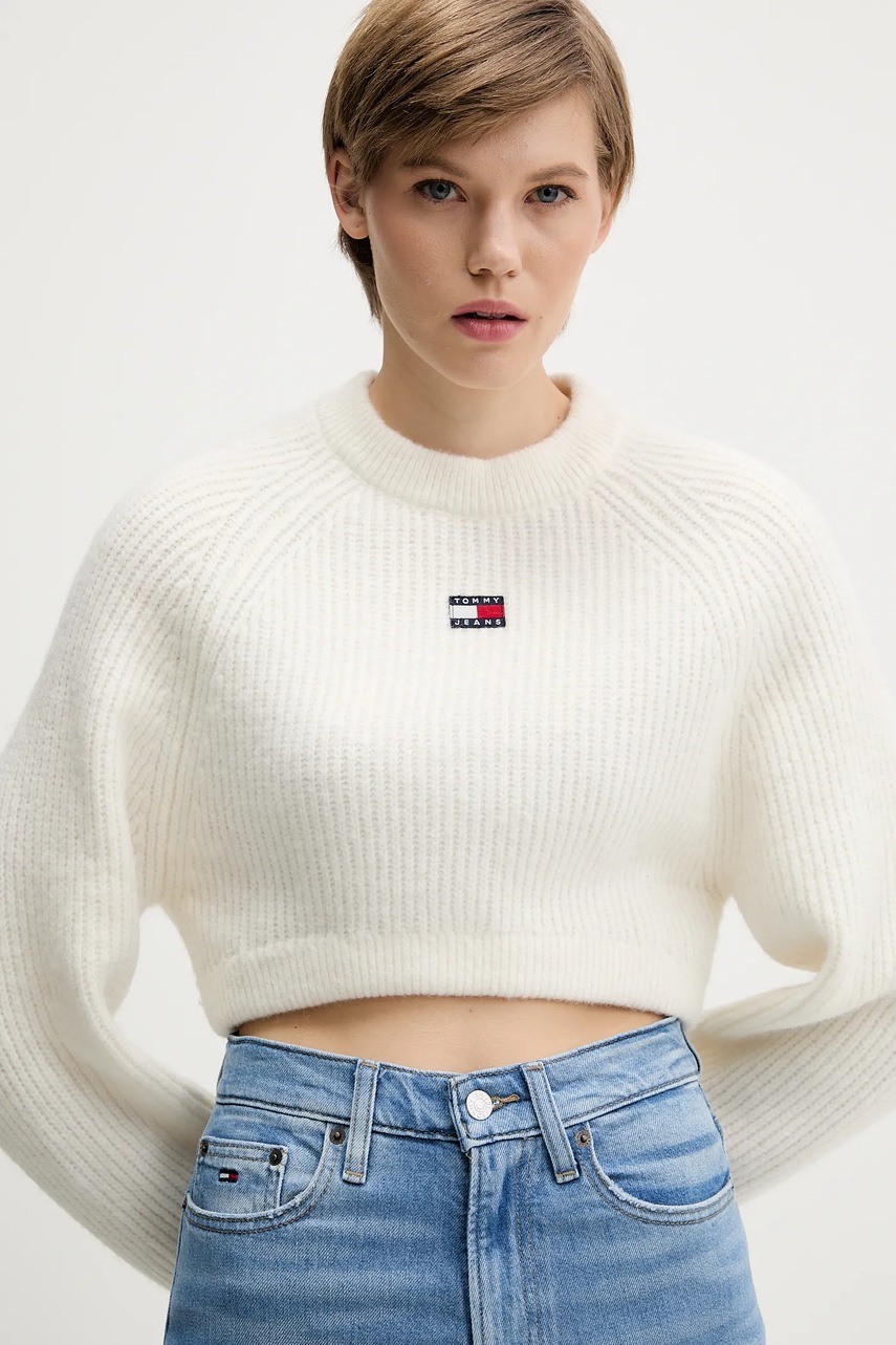 Tommy Jeans sweter z domieszką wełny damski kolor biały DW0DW21677