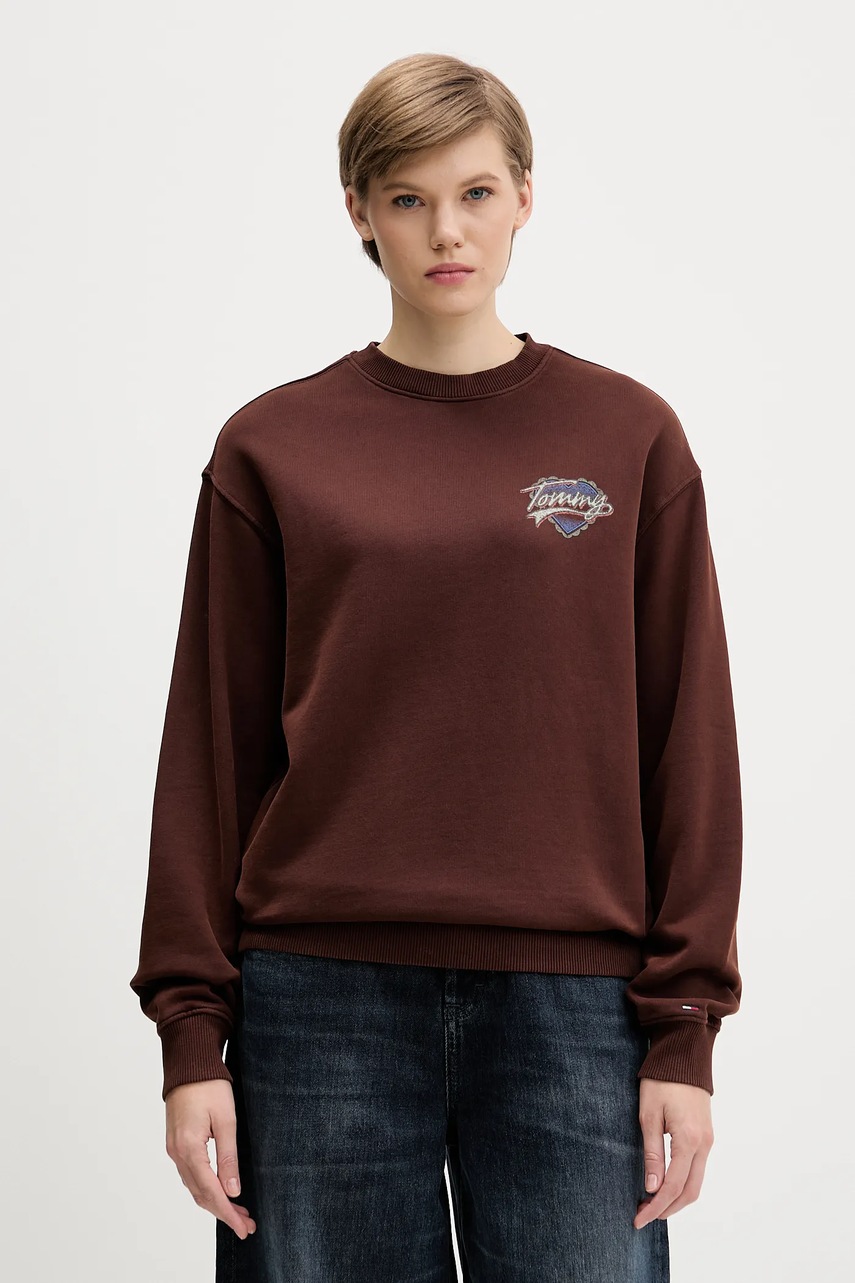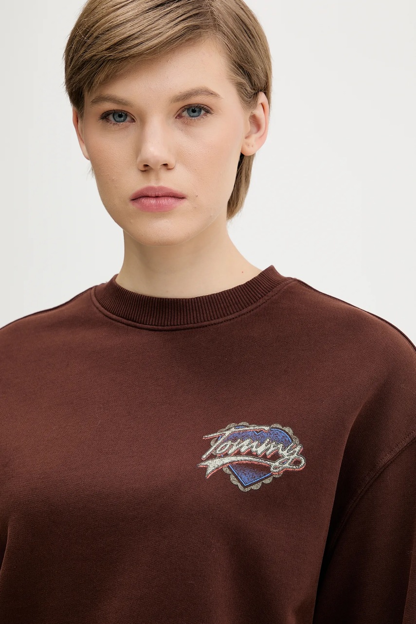 Tommy Jeans bluza bawełniana damska kolor brązowy z nadrukiem DW0DW21602
