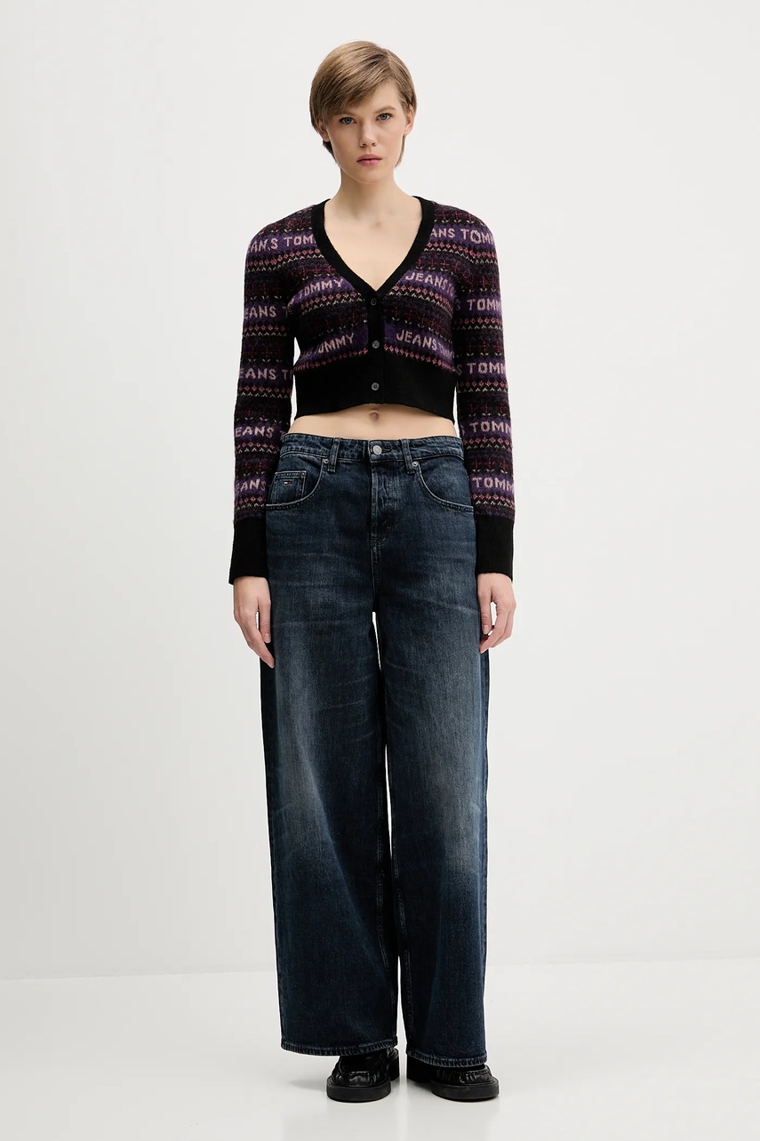 Tommy Jeans kardigan z domieszką wełny damski kolor czarny DW0DW21691