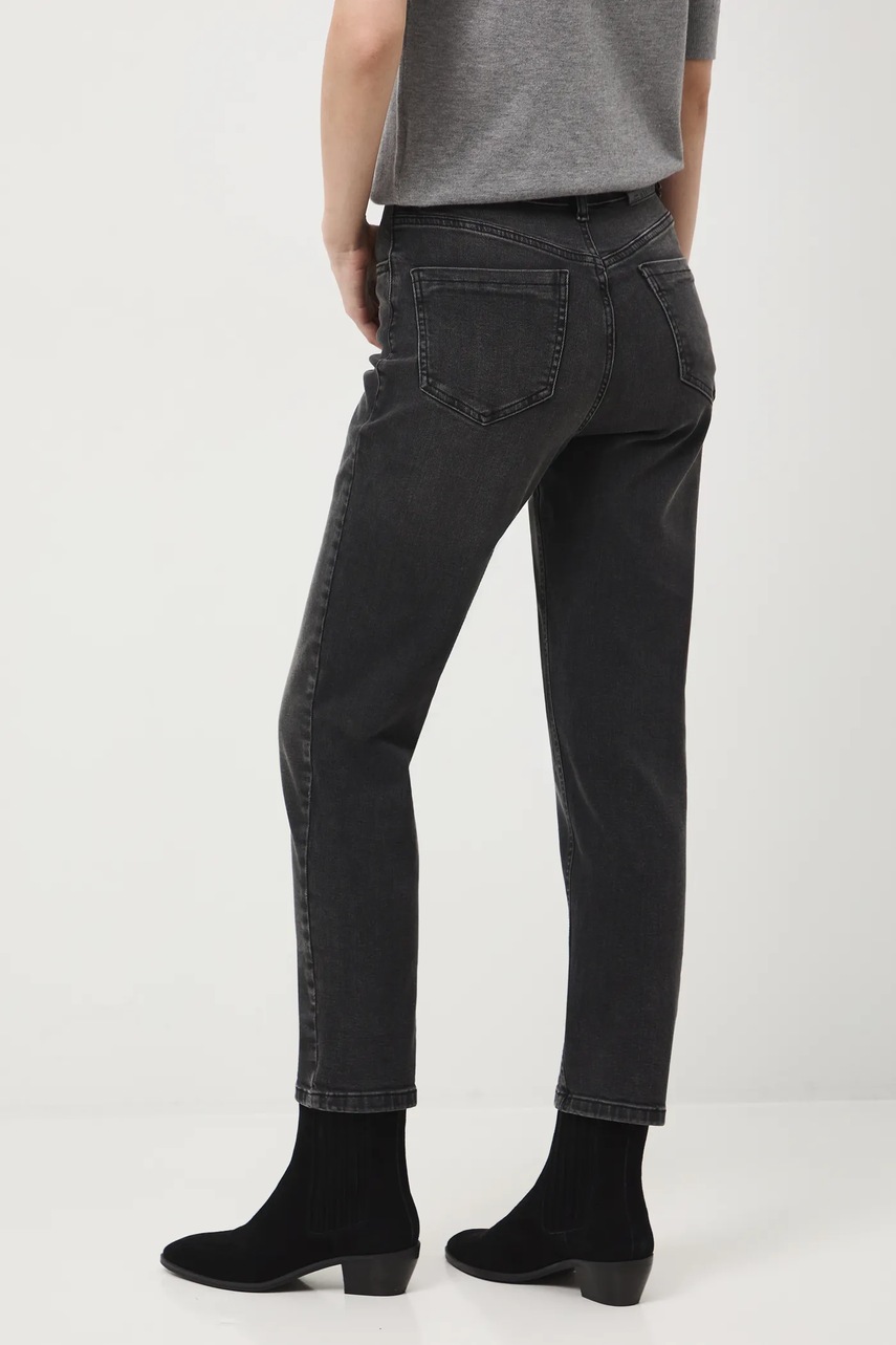 - Fason mom fit - jeansy inspirowane stylem vintage, o luźniejszym kroju, szczególnie w okolicy bioder i delikatnie zwężających się nogawkach. Krój mom fit optycznie zwęża talię oraz podkreśla partię ud, zachowując przy tym komfort noszenia.