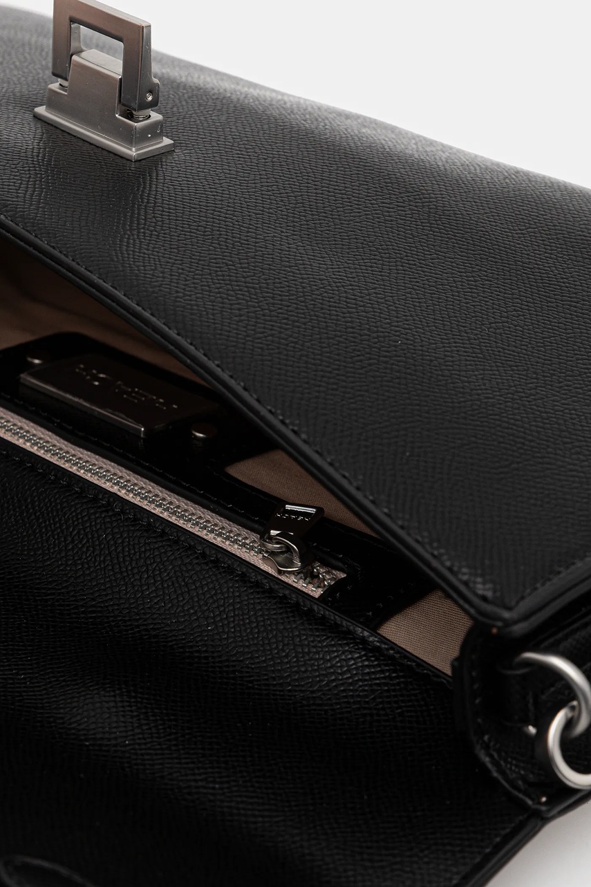 - Trzy kieszonki wewnętrzne: jedna zapinana na suwak, dwie wsuwane.