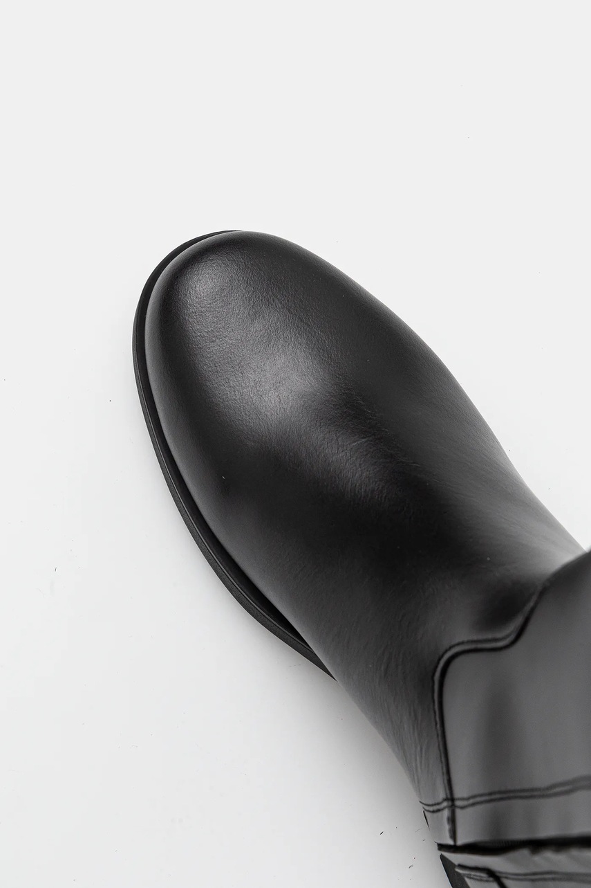 Love Moschino kozaki skórzane damskie kolor czarny na płaskim obcasie JA26064G0NIA0000
