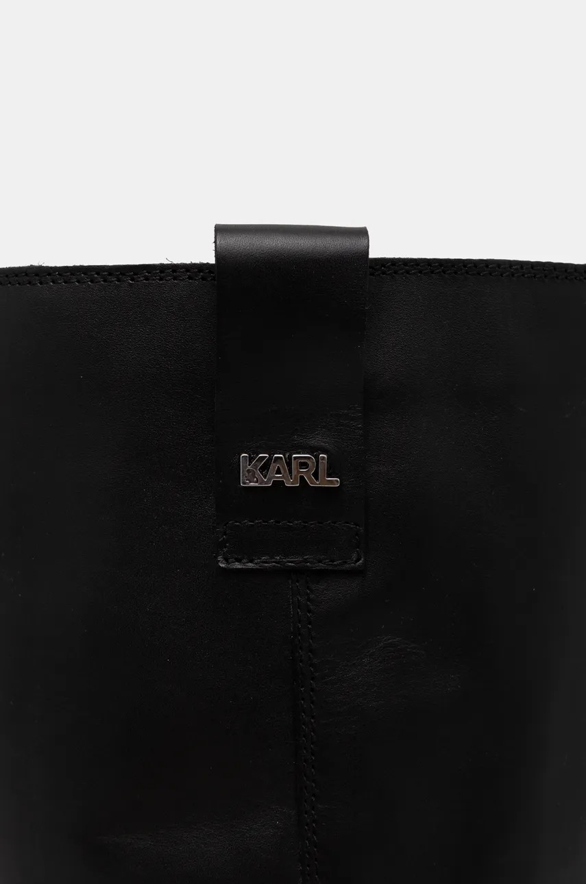 Karl Lagerfeld kozaki skórzane BROOKLYN damskie kolor czarny na słupku KL41774
