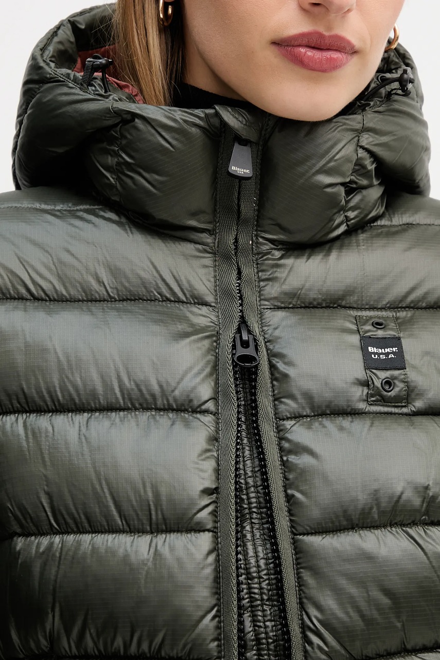 - Podwyższony kołnierz i nieodpinany kaptur gwarantują dodatkową ochronę przed chłodem.