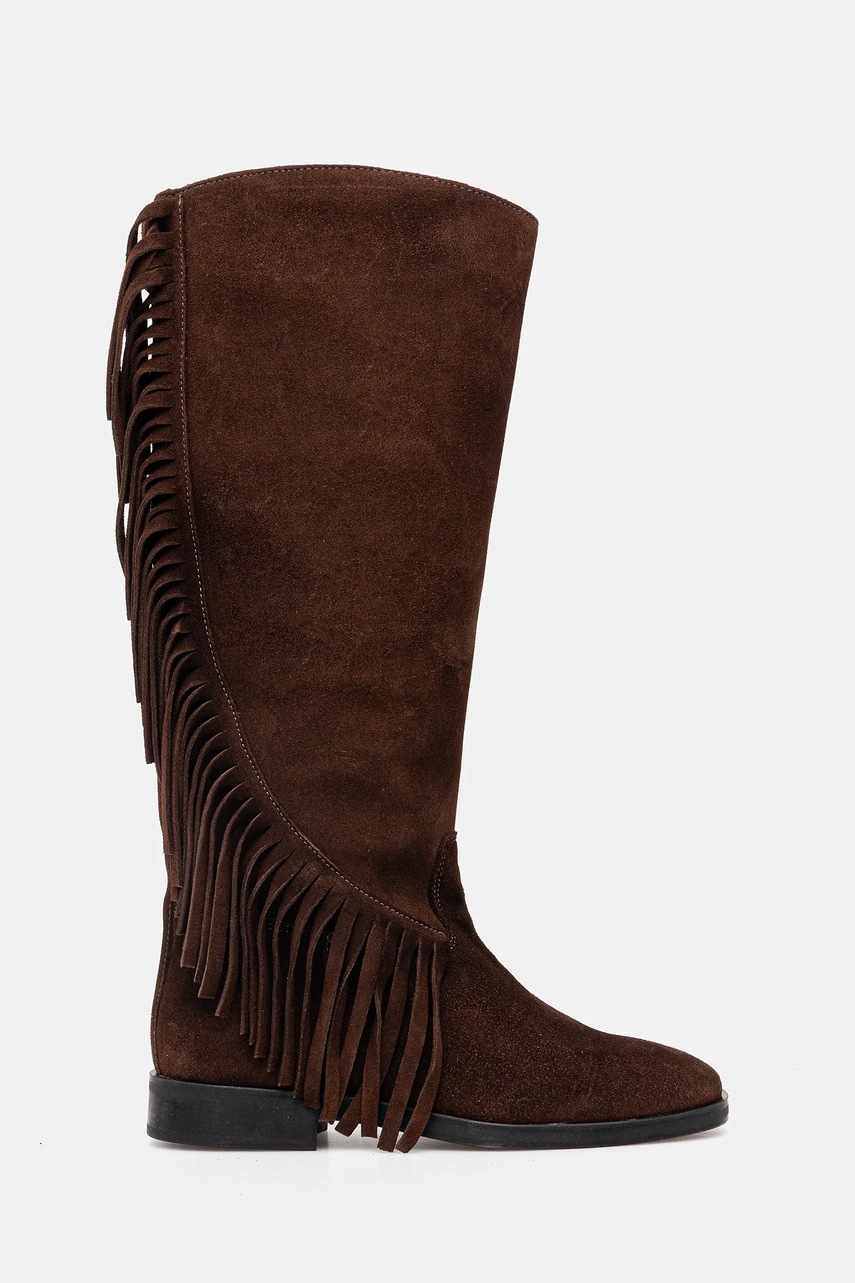Steve Madden kozaki zamszowe Nigella damskie kolor brązowy na płaskim obcasie 11004914