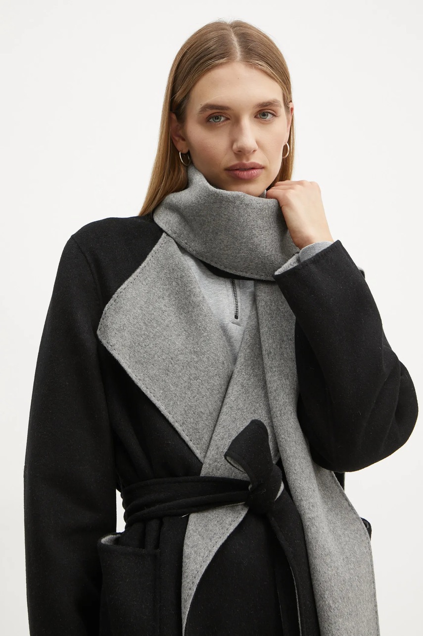 Karl Lagerfeld płaszcz wełniany dwustronny kolor czarny przejściowy A1W15018