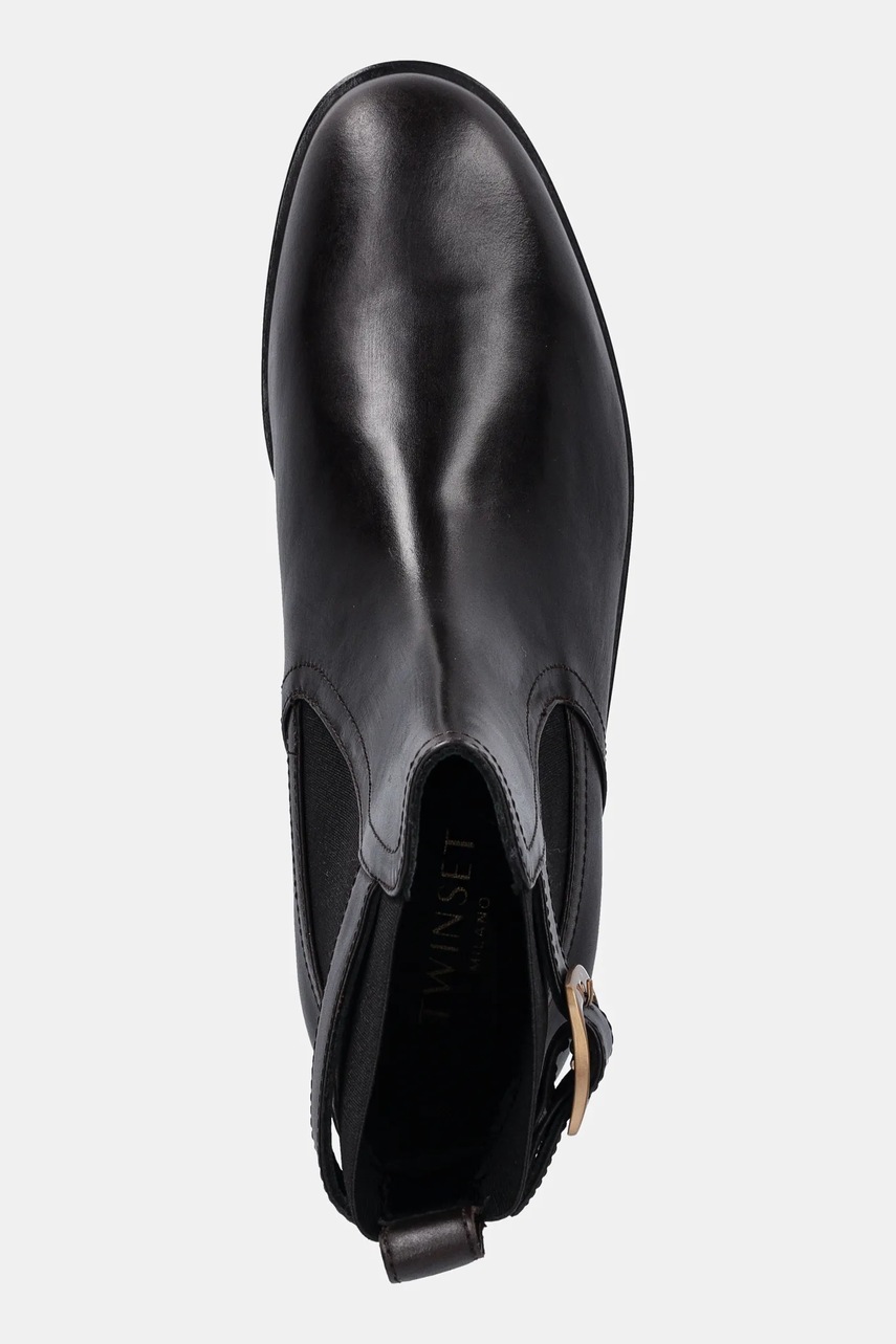 Twinset sztyblety skórzane damskie kolor brązowy na płaskim obcasie 252TCP120