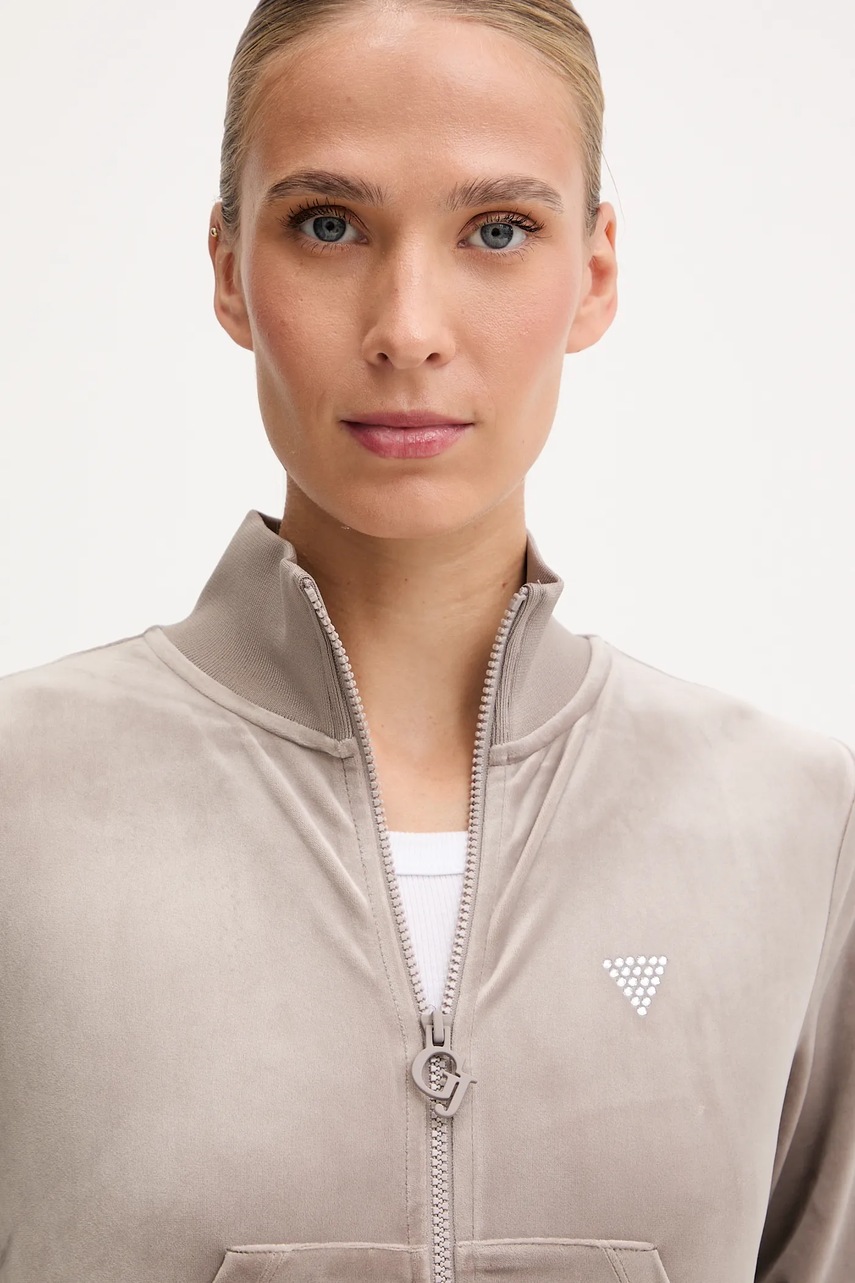 Guess bluza welurowa COUTURE damska kolor beżowy gładka V3BQ22 K0232