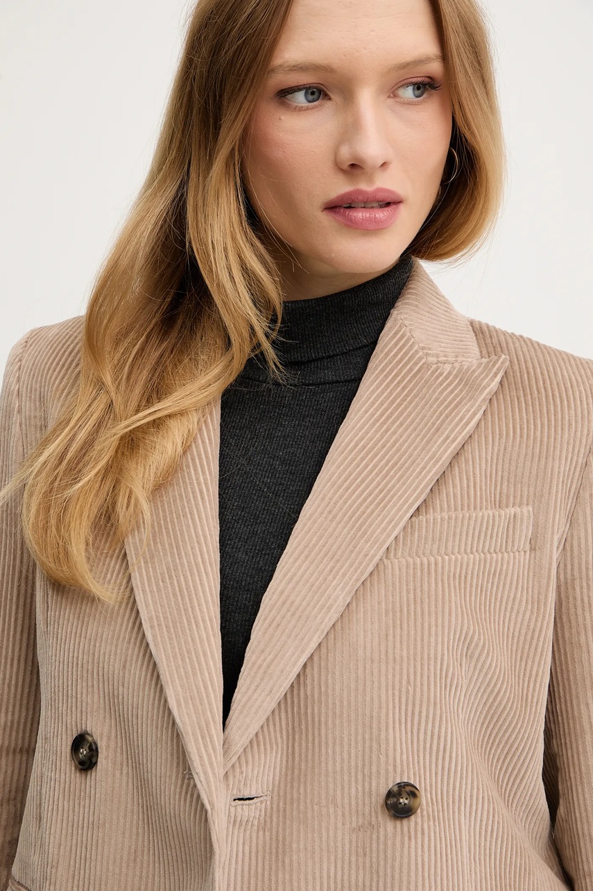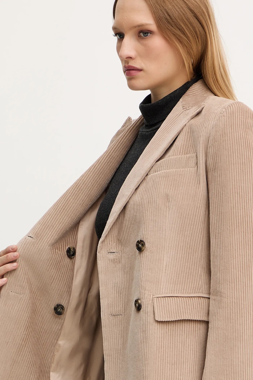 Weekend Max Mara marynarka sztruksowa KATANGA kolor beżowy dwurzędowa gładka 2525046062600