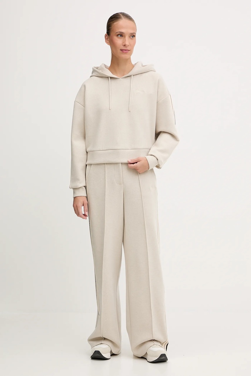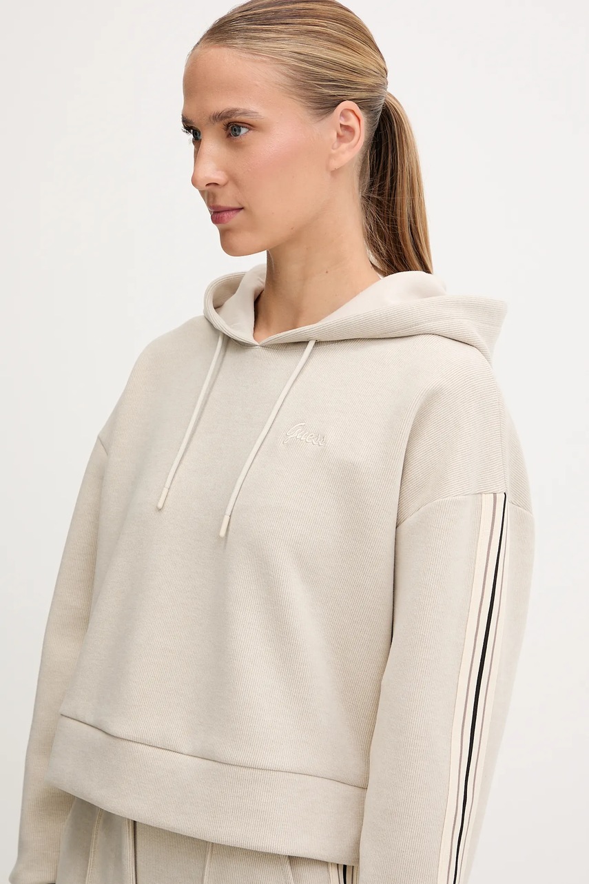 Guess bluza z domieszką wełny MURIEL damska kolor beżowy z kapturem z aplikacją V5BQ14 KCX52
