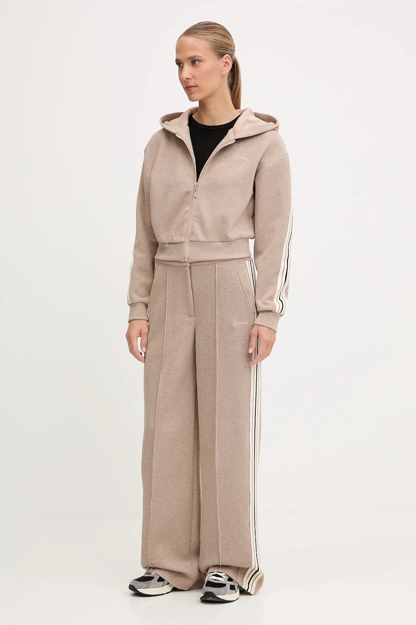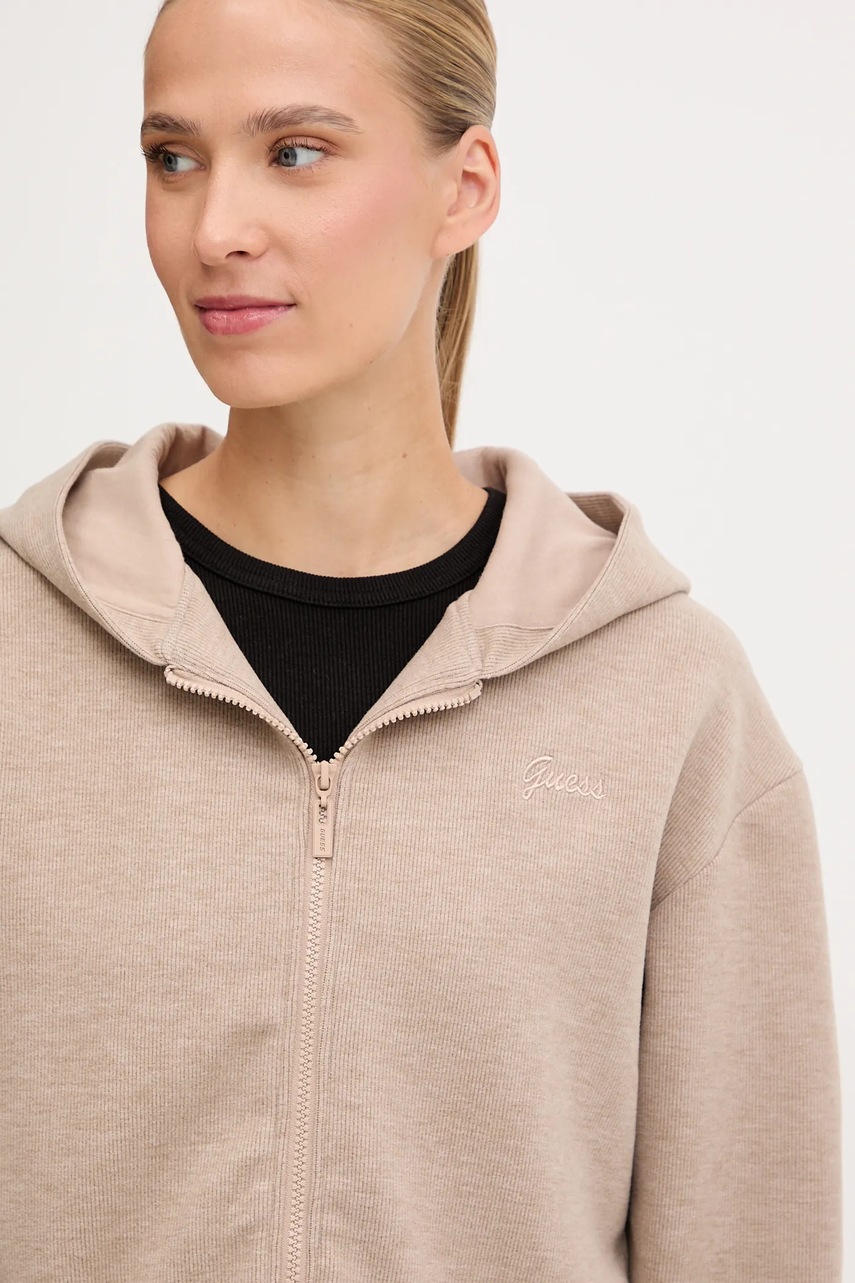 Guess bluza z domieszką wełny MURIEL damska kolor beżowy z kapturem z aplikacją V5BQ17 KCX52