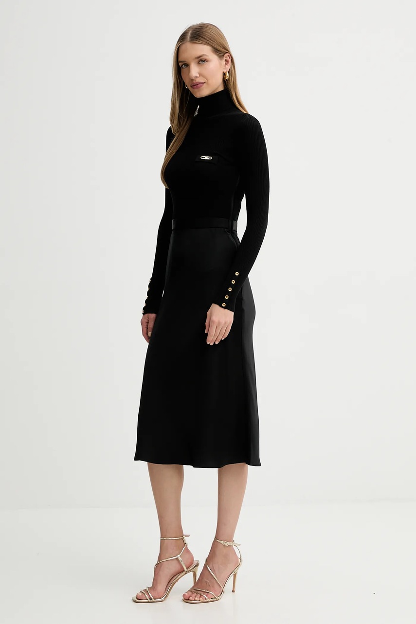 Elisabetta Franchi sukienka z dodatkiem jedwabiu kolor czarny midi prosta AM06B56E2