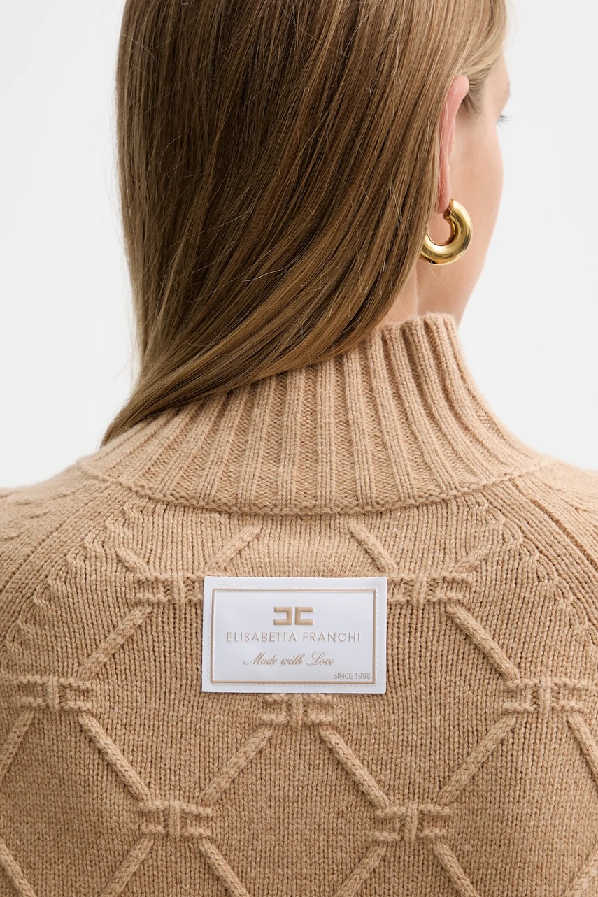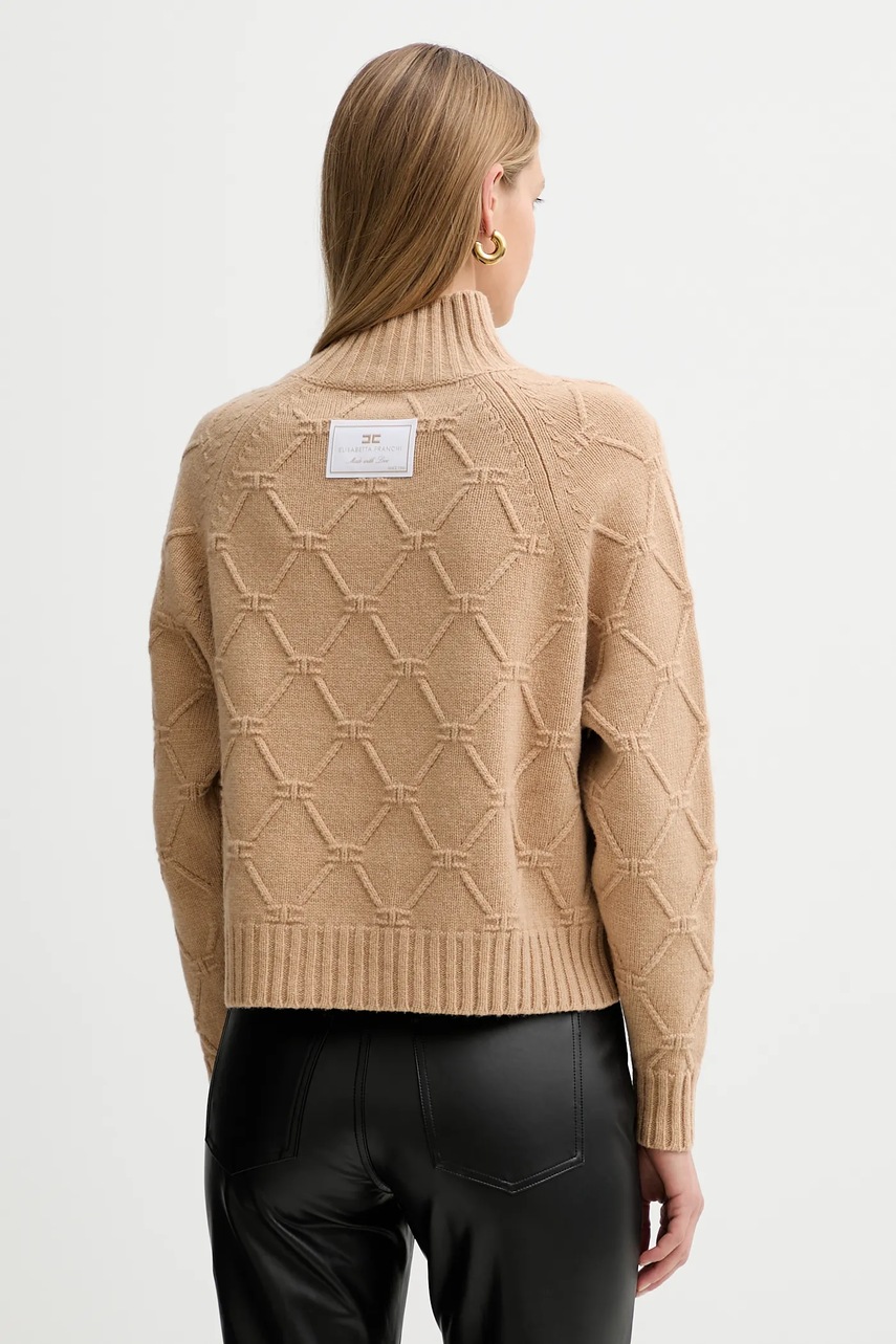 Elisabetta Franchi sweter wełniany damski kolor beżowy z golfem MK55T57E2