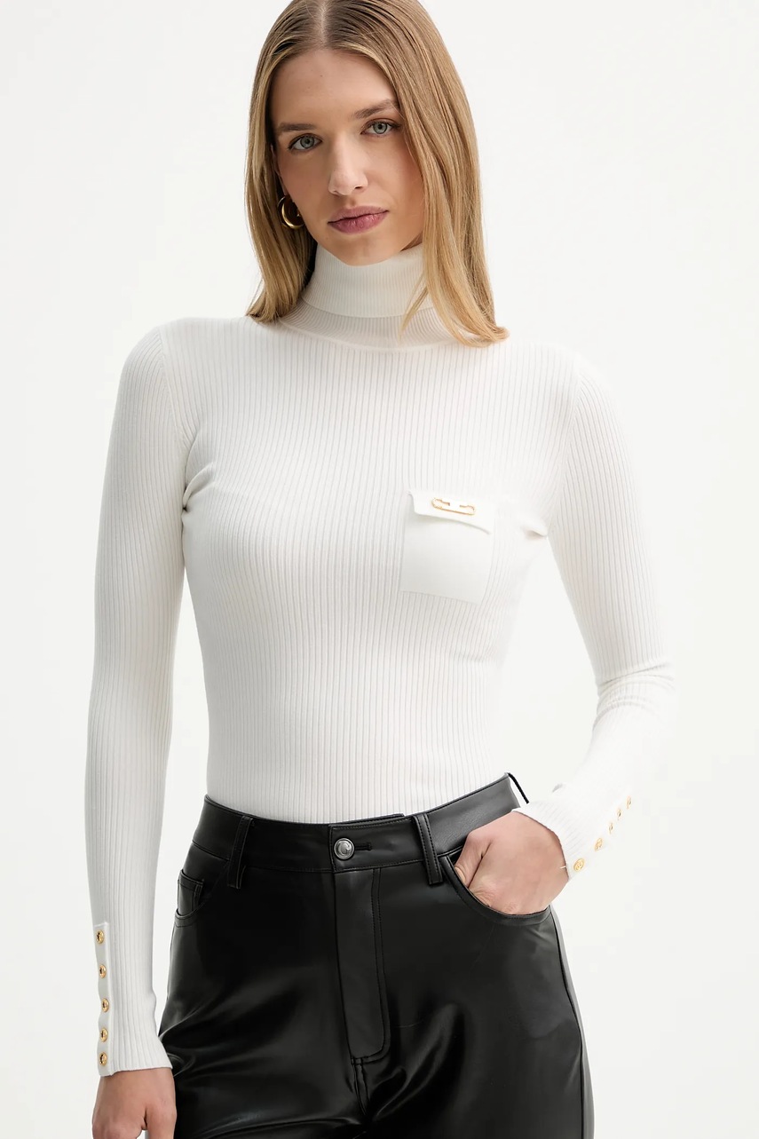 Elisabetta Franchi sweter z dodatkiem jedwabiu damski kolor beżowy lekki z golfem MK11B56E2