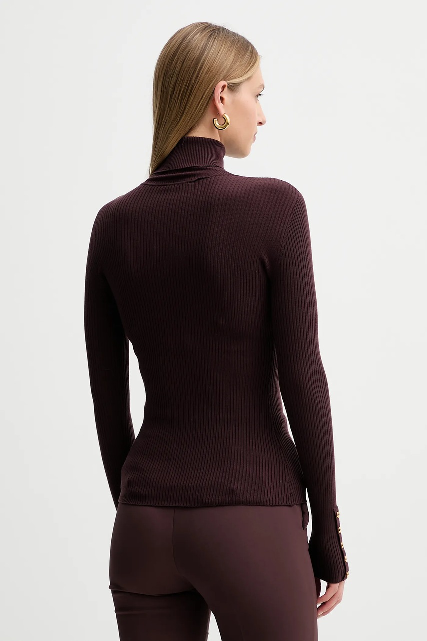 Elisabetta Franchi sweter z dodatkiem jedwabiu damski kolor bordowy lekki z golfem MK11B56E2