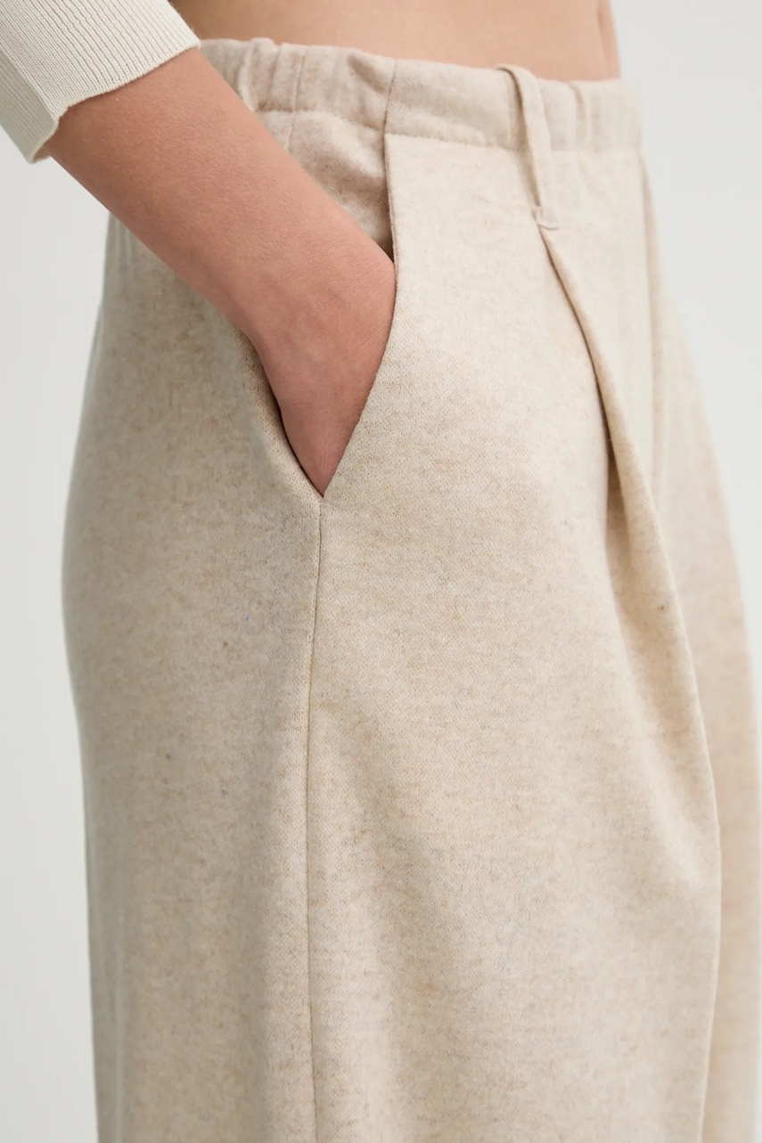 Liviana Conti spodnie z dodatkiem kaszmiru damskie kolor beżowy szerokie high waist L5WN37