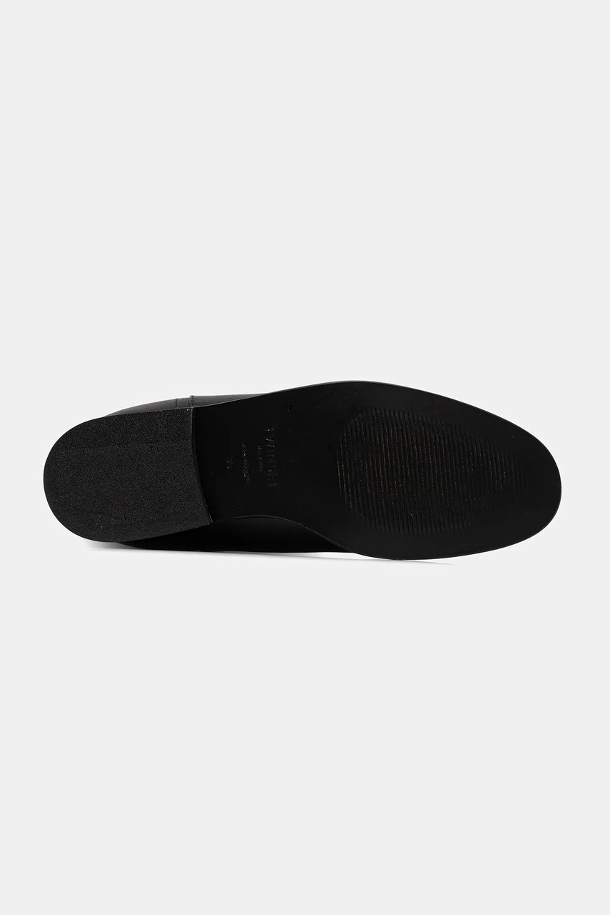 Twinset kozaki skórzane damskie kolor czarny na płaskim obcasie 252TCP19C