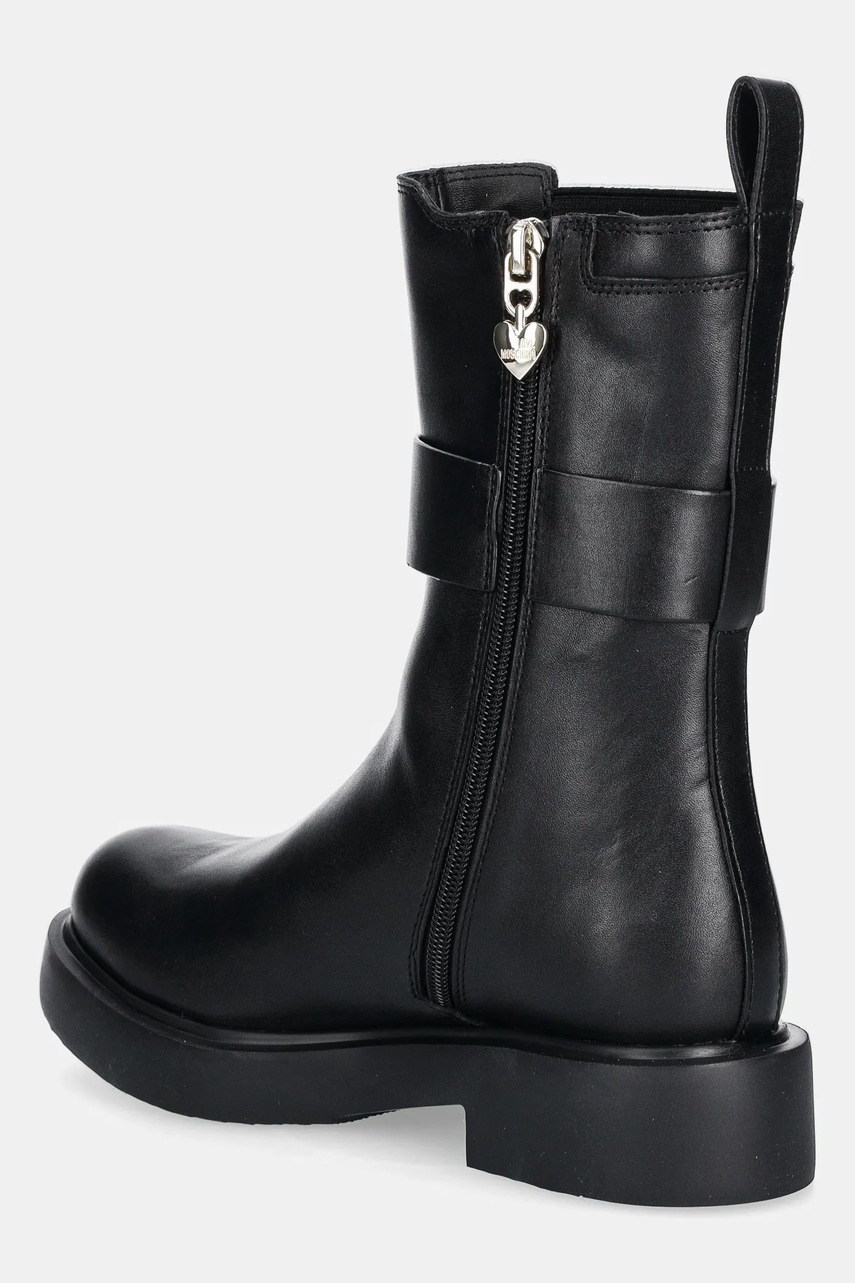Love Moschino botki skórzane damskie kolor czarny na płaskim obcasie JA24044G1NIA0000