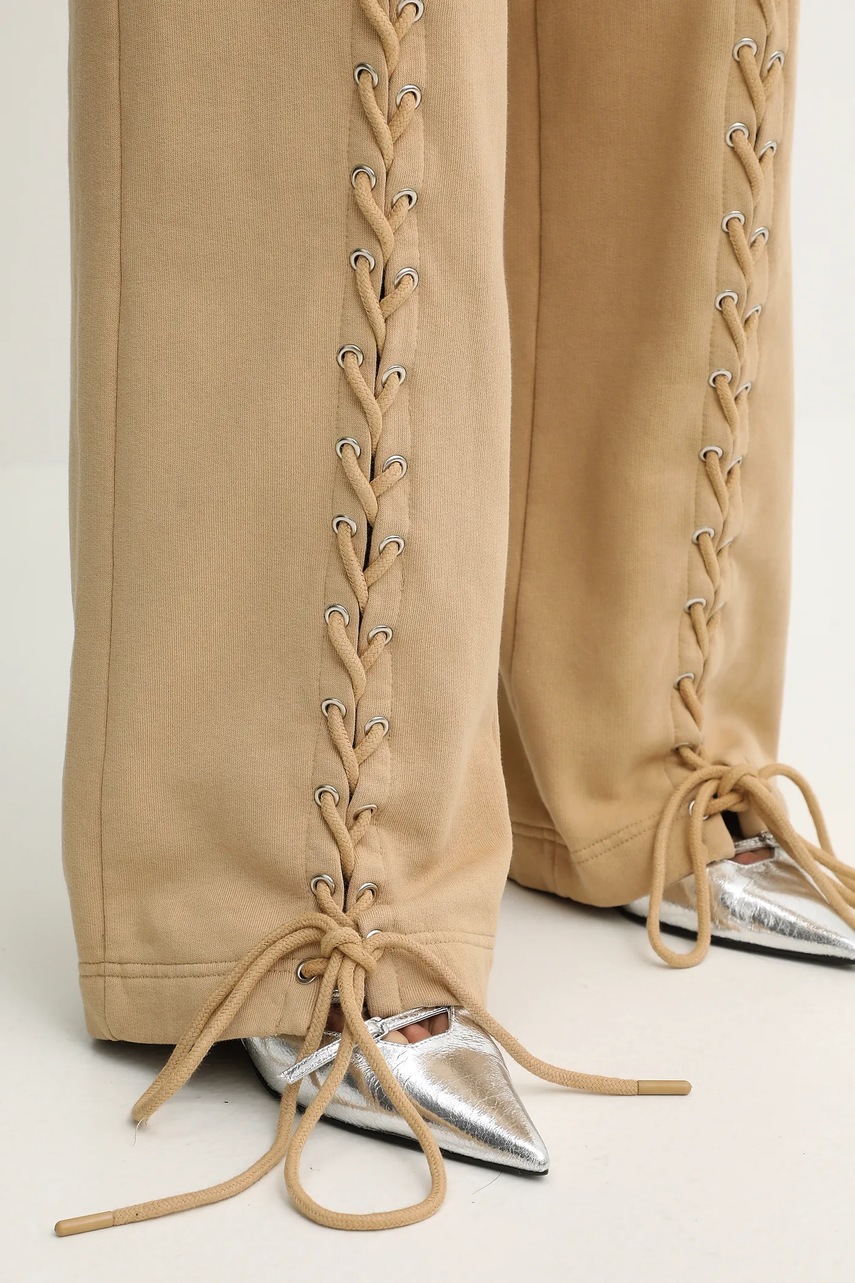 Rotate spodnie dresowe bawełniane damskie kolor beżowy gładkie 114389654