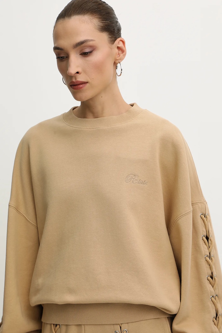 Rotate bluza bawełniana damska kolor beżowy gładka 115468654