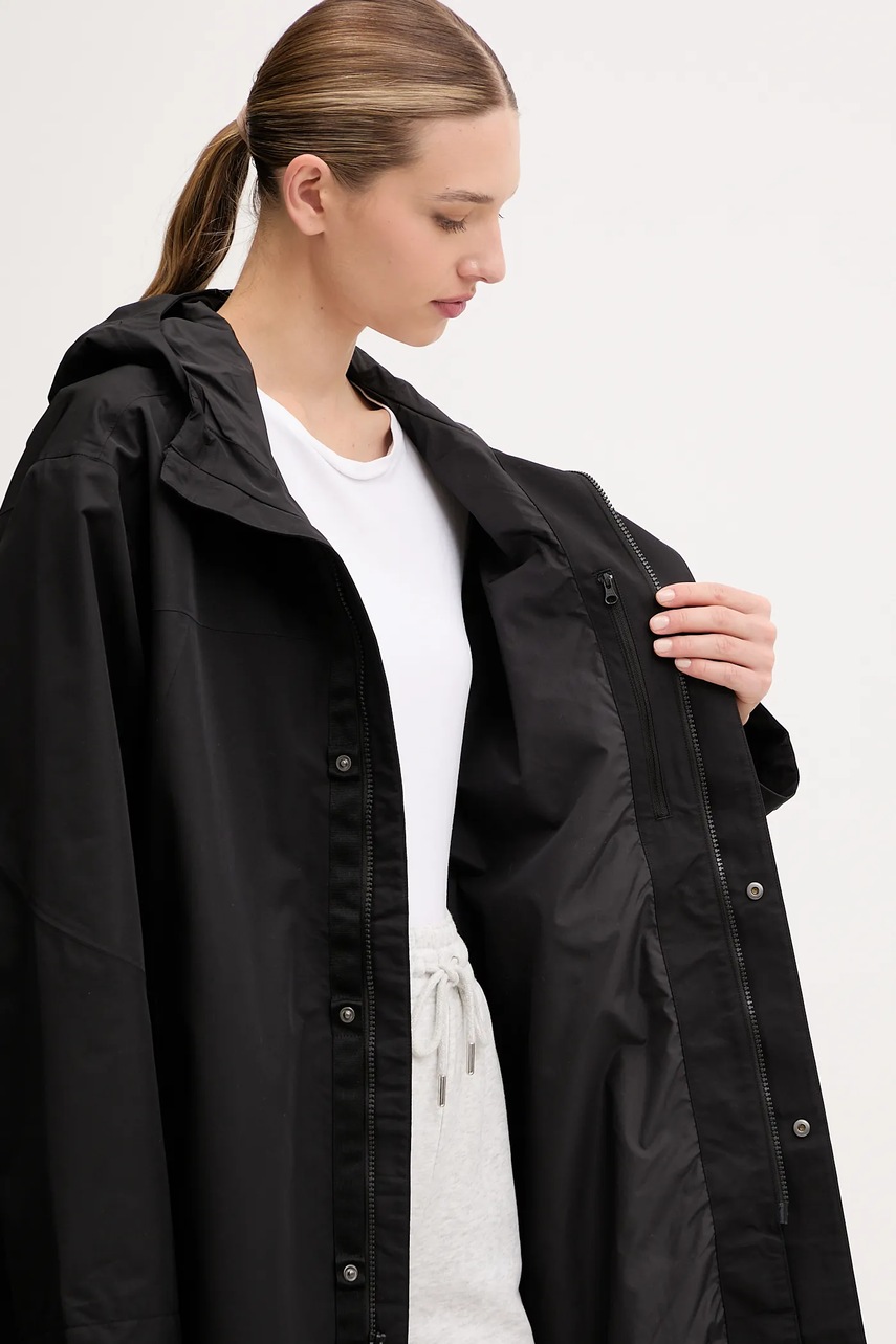 - Podwyższony kołnierz i nieodpinany kaptur gwarantują dodatkową ochronę przed chłodem.