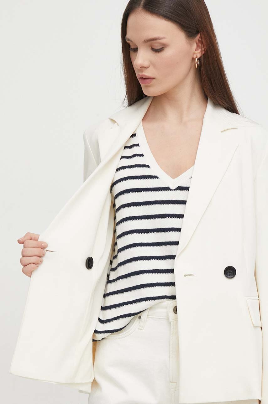 Sisley marynarka kolor beżowy dwurzędowa gładka