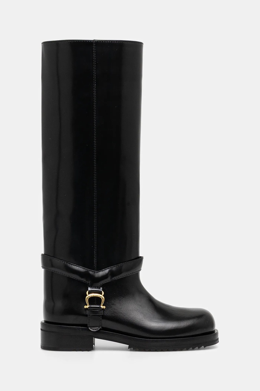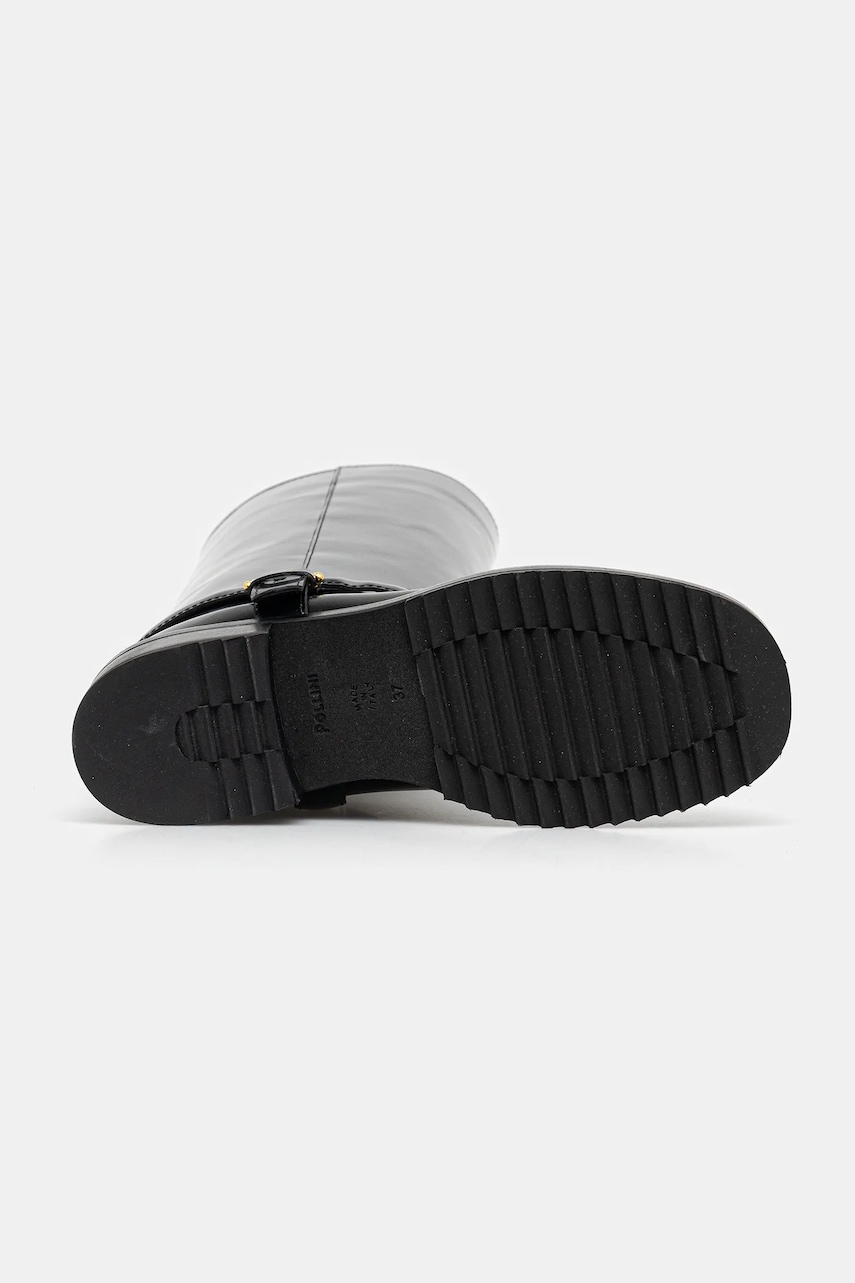 Pollini kozaki skórzane damskie kolor czarny na płaskim obcasie PA26154G0NPC0000