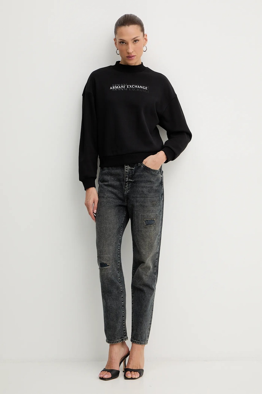Armani Exchange bluza bawełniana damska kolor czarny z nadrukiem XW000787 AF16141