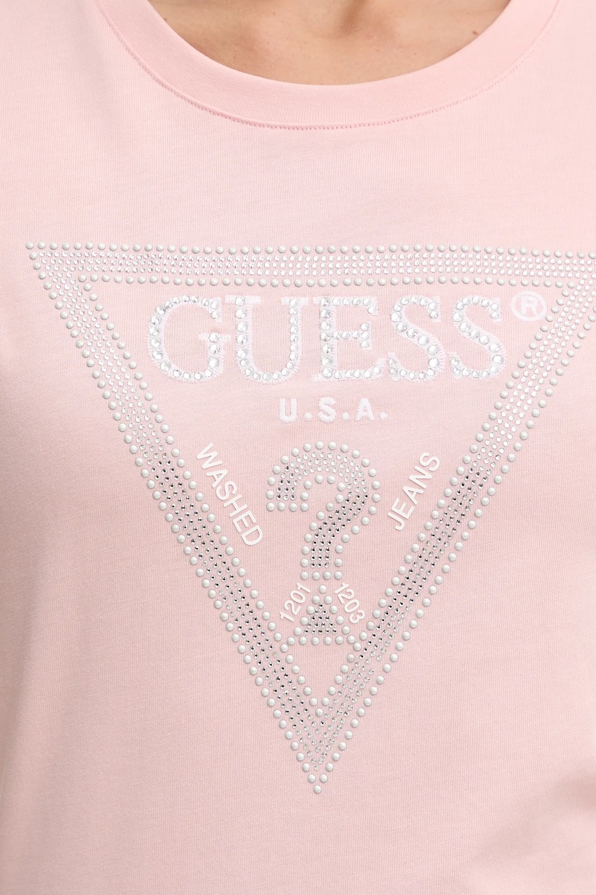 Guess t-shirt bawełniany damski kolor różowy W5BI18 I3Z14