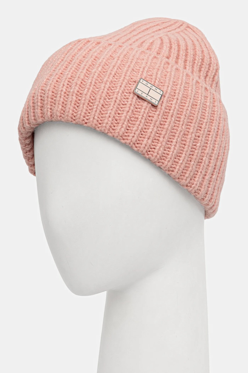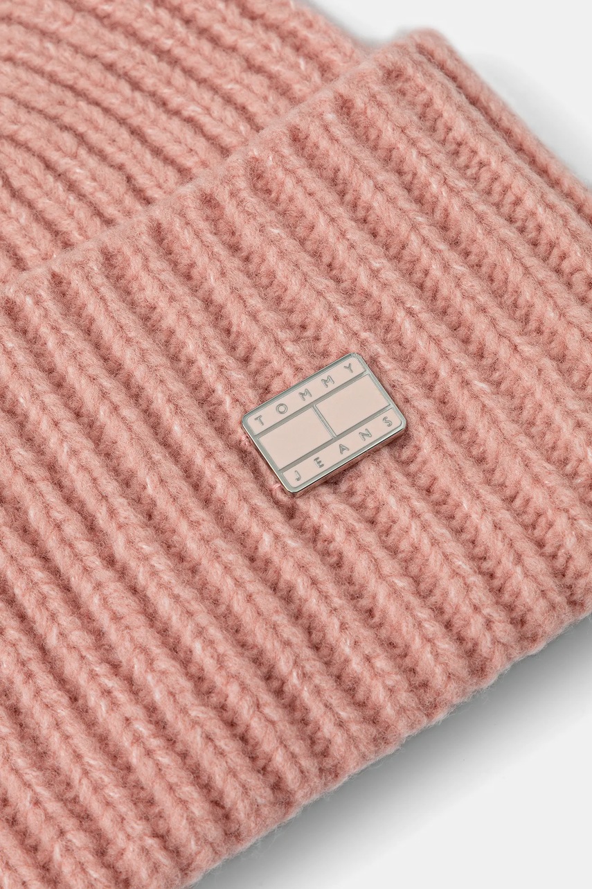 Tommy Jeans czapka z dodatkiem wełny kolor różowy AW0AW17905