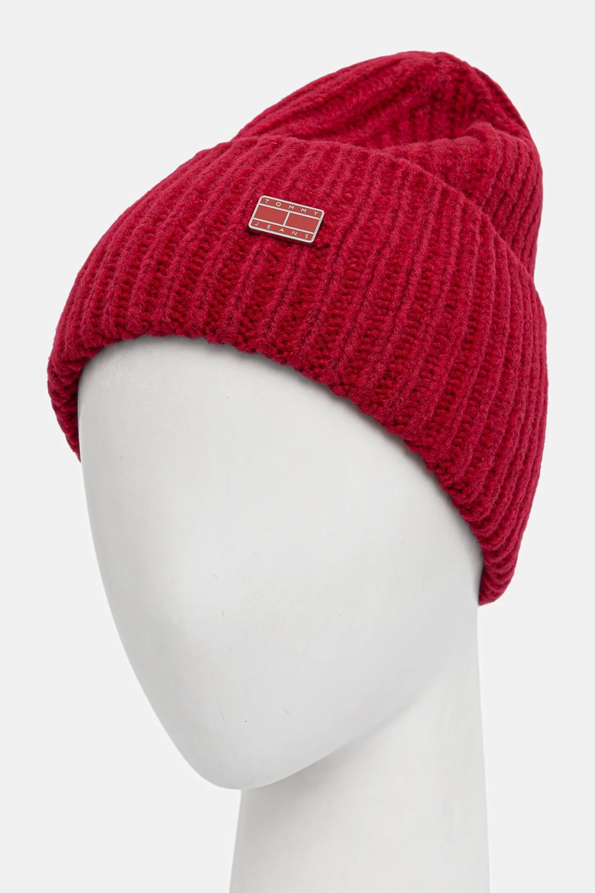 Tommy Jeans czapka z dodatkiem wełny kolor czerwony AW0AW17905