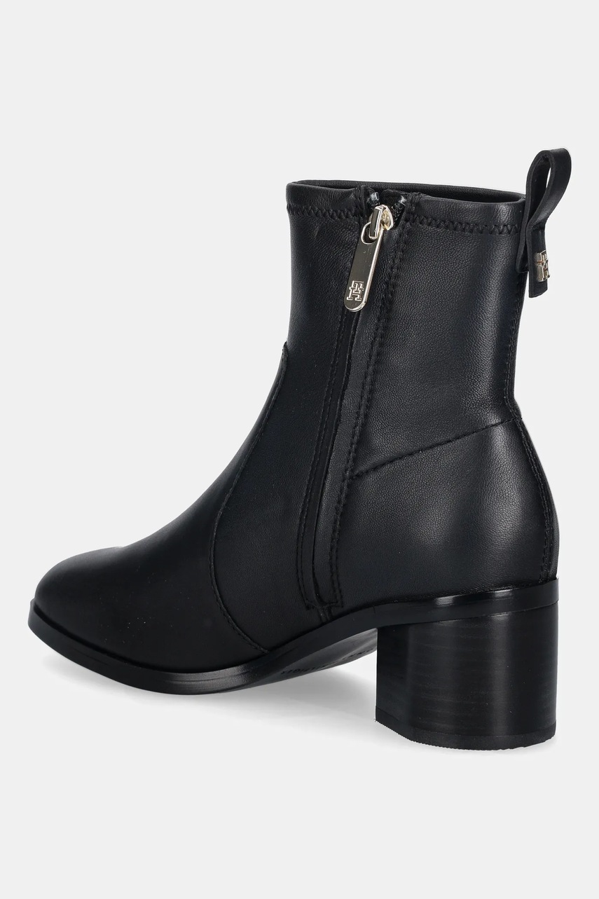 Tommy Hilfiger botki skórzane TH STRETCH LEATHER BOOTIE damskie kolor czarny na słupku FW0FW08860