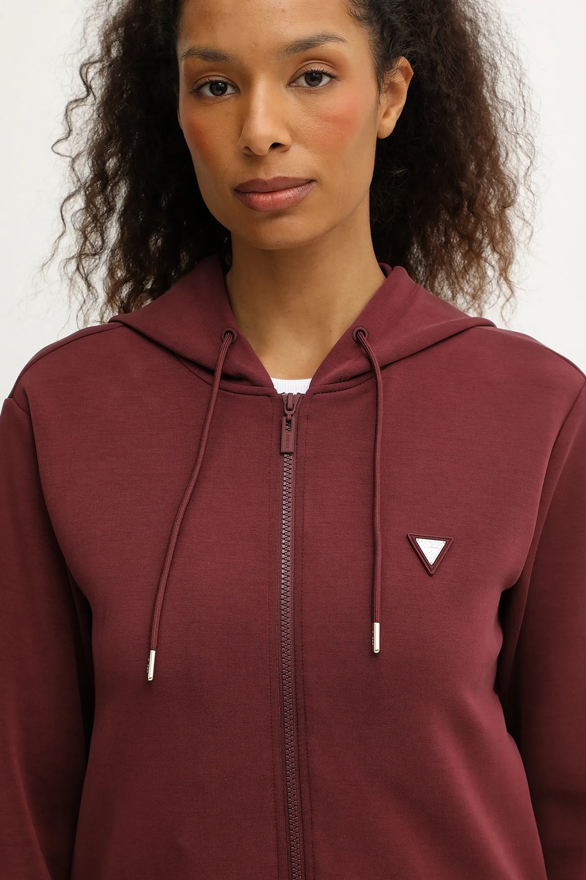 Guess bluza OLYMPE damska kolor bordowy z kapturem gładka V4YQ06 KCAY2