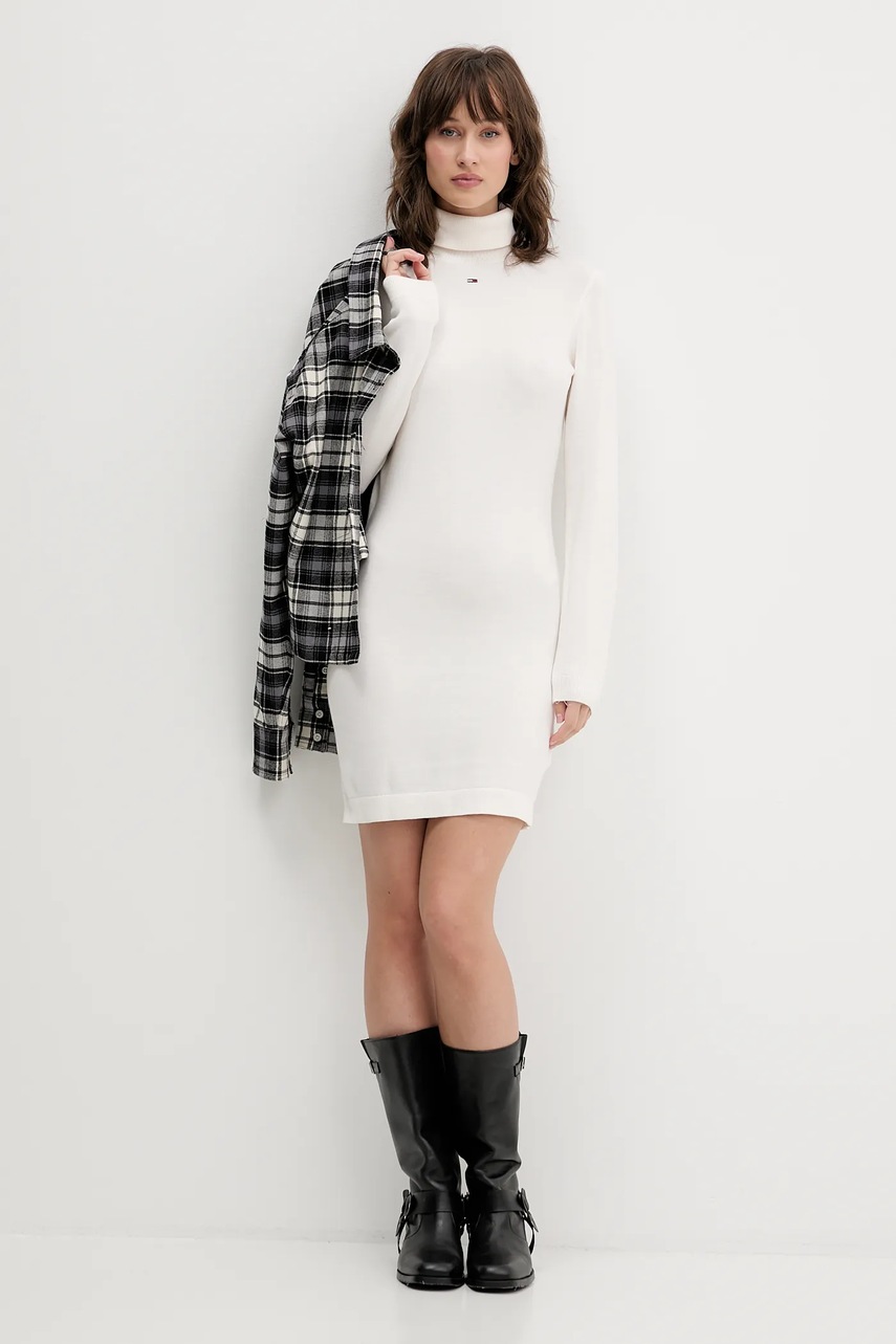 Tommy Jeans sukienka bawełniana kolor biały mini dopasowana DW0DW21958