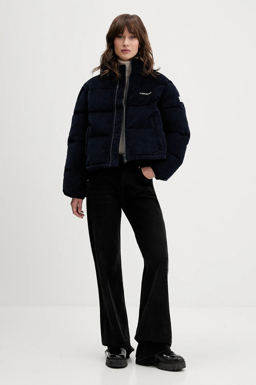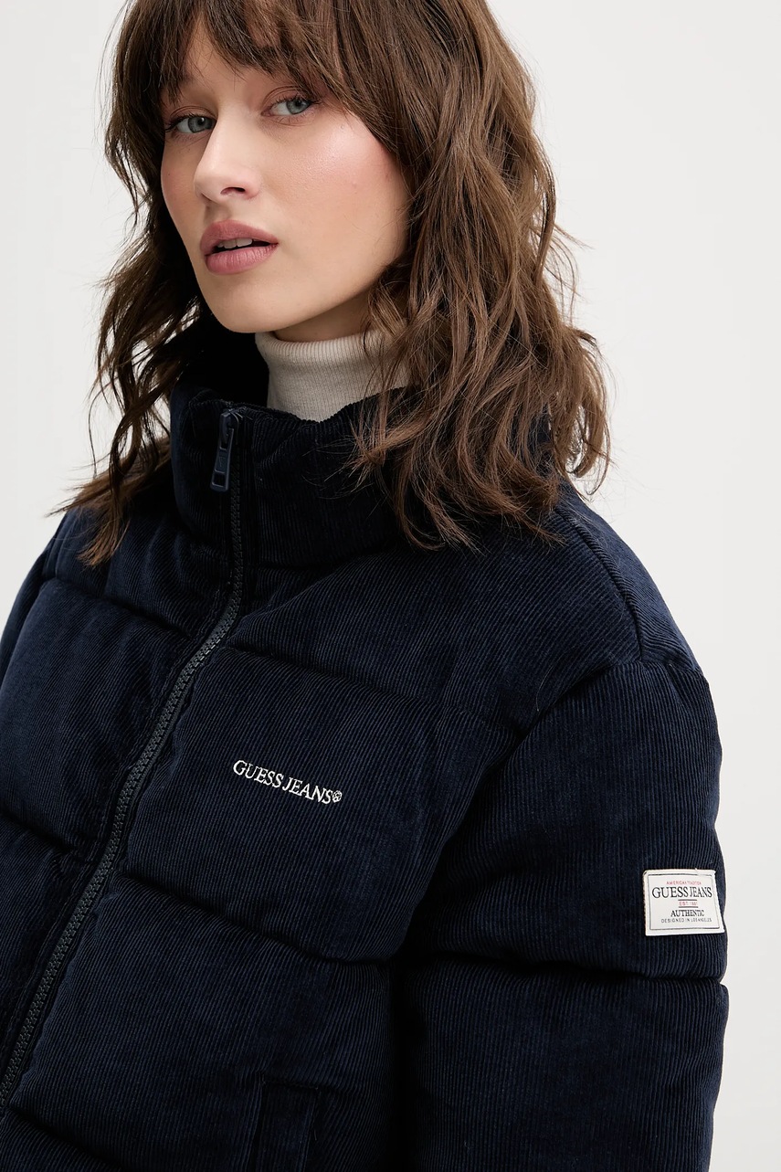 Guess Jeans kurtka sztruksowa kolor granatowy zimowa W5BL17 W2061