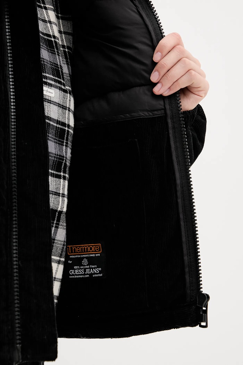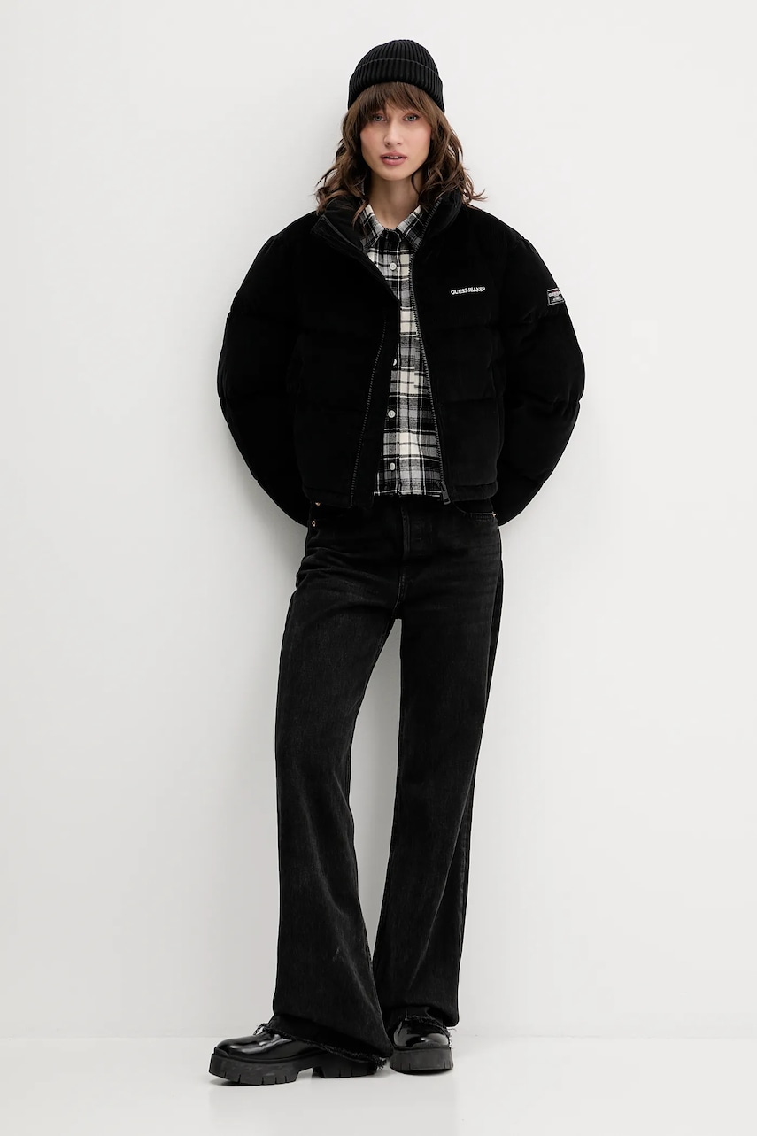Guess Jeans kurtka sztruksowa kolor czarny zimowa W5BL17 W2061
