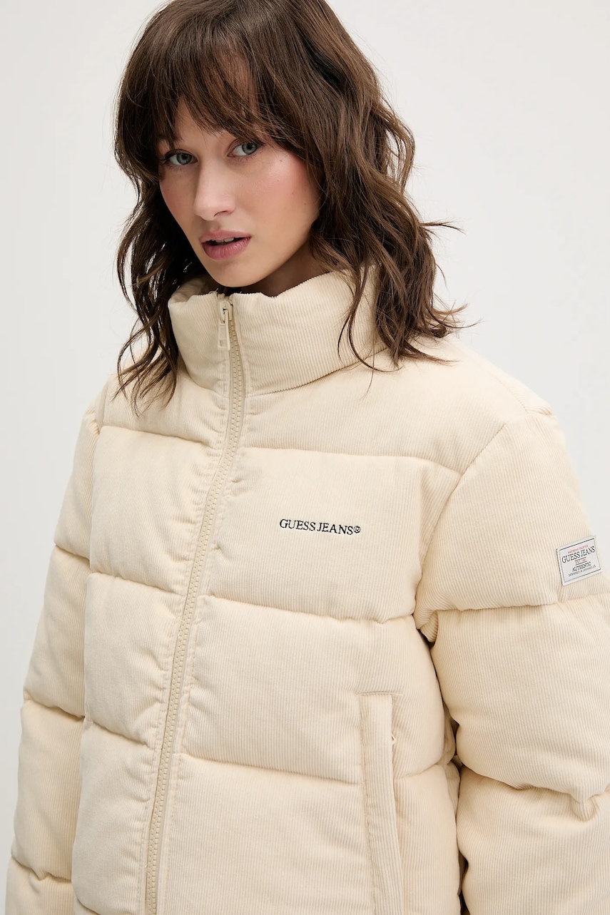 Guess Jeans kurtka sztruksowa kolor beżowy zimowa W5BL17 W2061