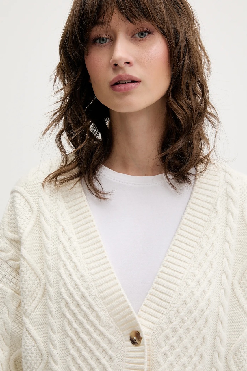 Guess Jeans kardigan z dodatkiem wełny damski kolor beżowy W5BR08 Z0561