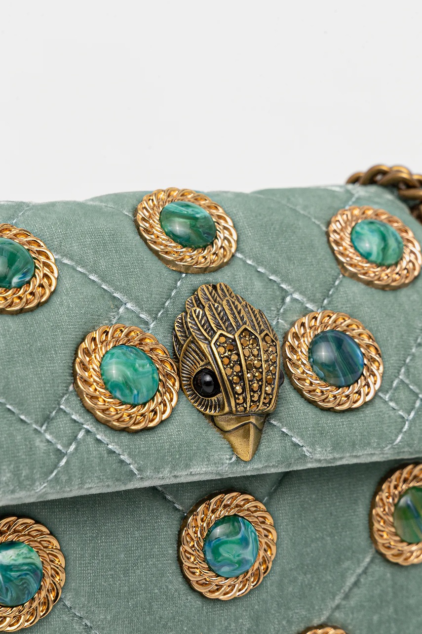 Kurt Geiger London torebka welurowa VELVET MINI KENSINGTON kolor zielony 5018373789