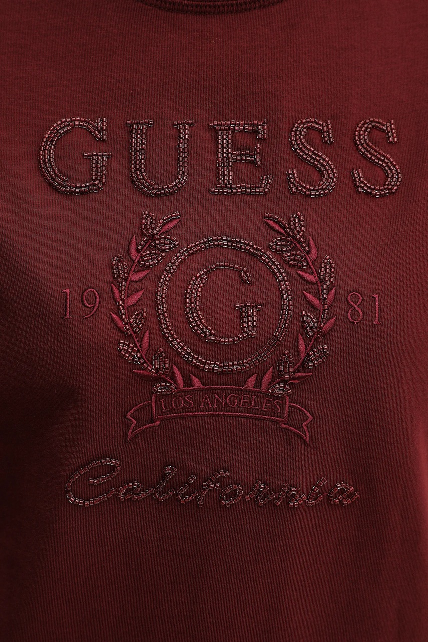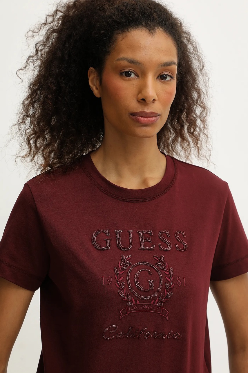 Guess t-shirt bawełniany MENA damski kolor bordowy V5BI07 K8FQ4
