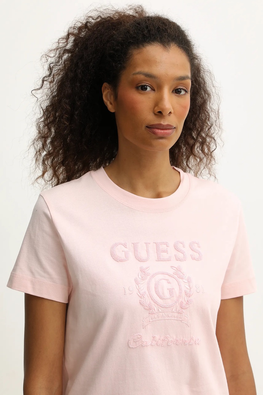 Guess t-shirt bawełniany MENA damski kolor pomarańczowy V5BI07 K8FQ4