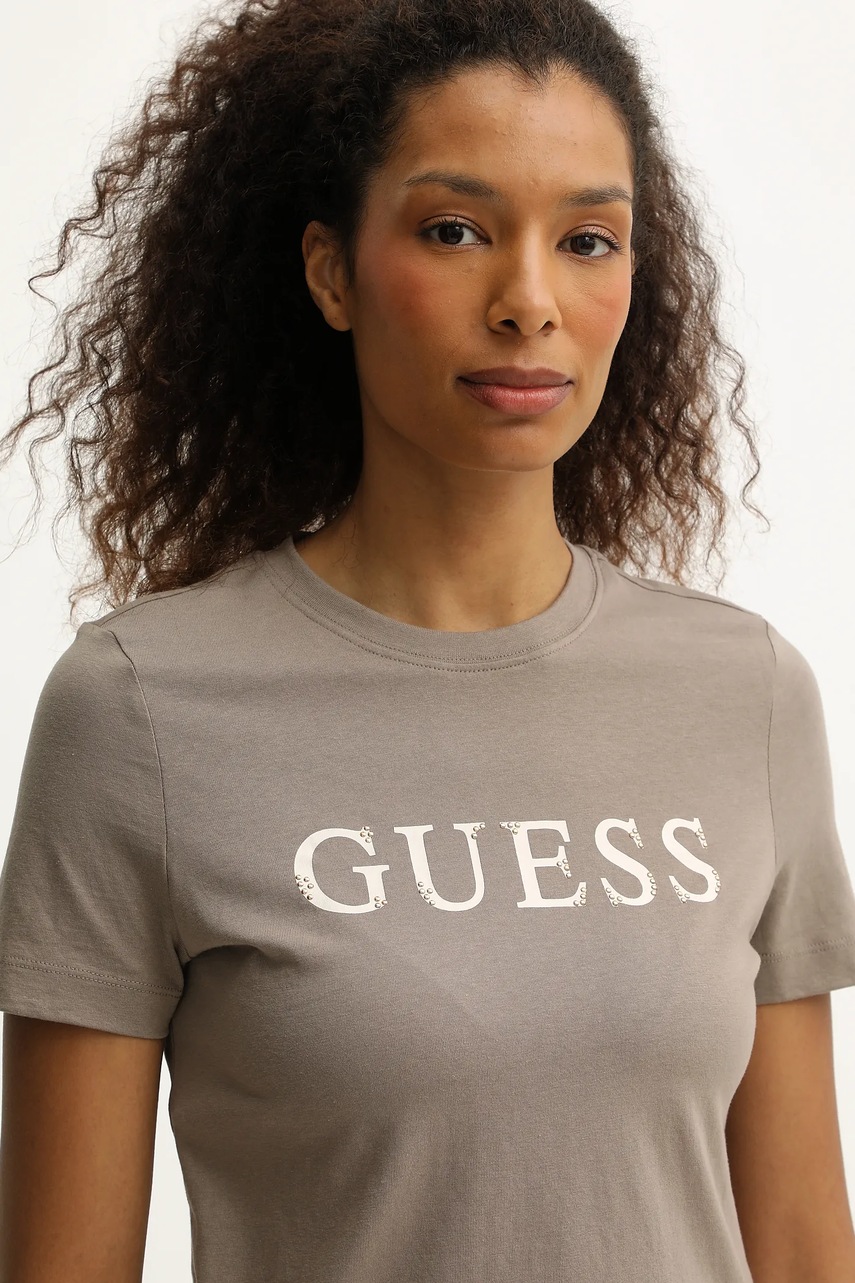 Guess t-shirt bawełniany CLELIA damski kolor beżowy V5BI10 I3Z14